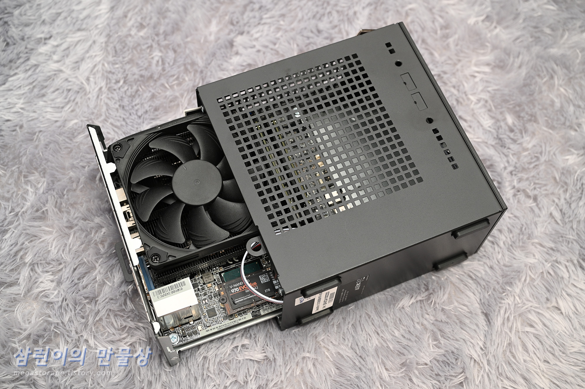 상단에도 바람 구멍이 있습니다. 케이스의 좌측으로 들어온 바람이 상단으로 빠져나가게 될 것입니다.