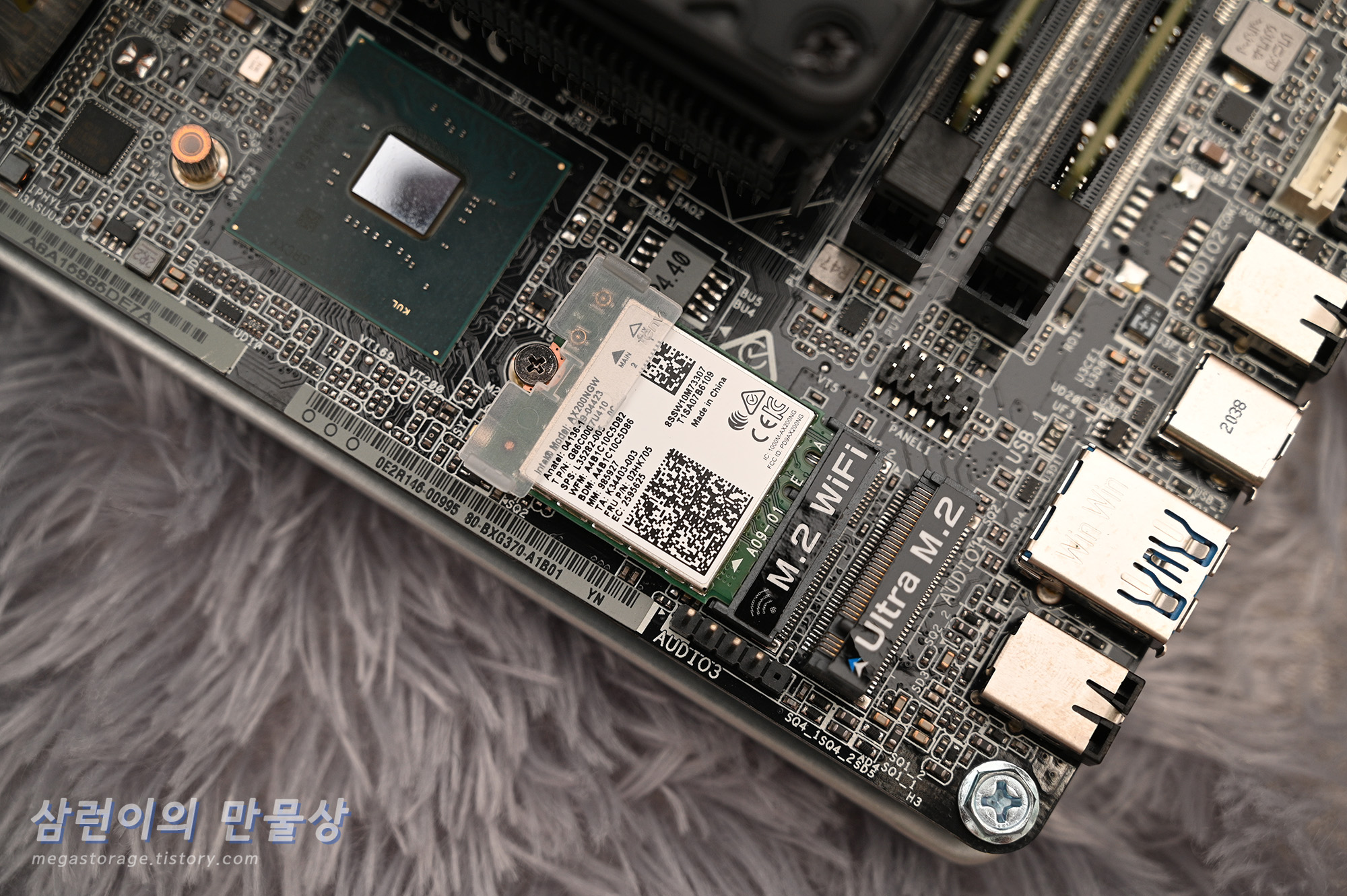 Wi-Fi/BT 카드를 장착할 수 있고 NVME SSD를 장착할 수 있습니다.
