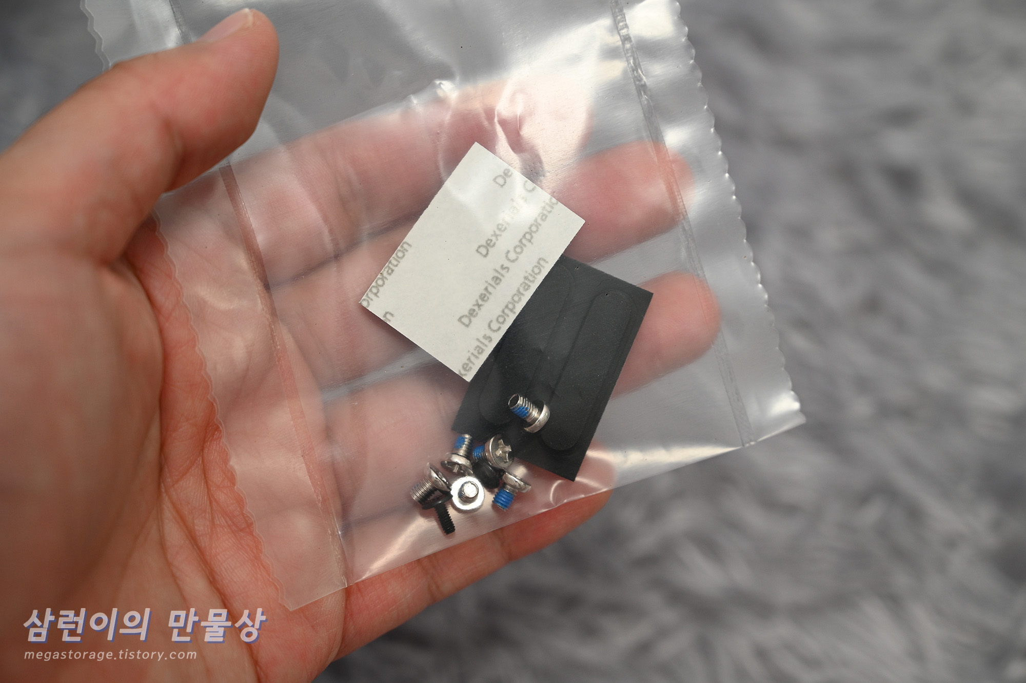 케이스에 붙이는 고무판과 나사들이 있습니다.