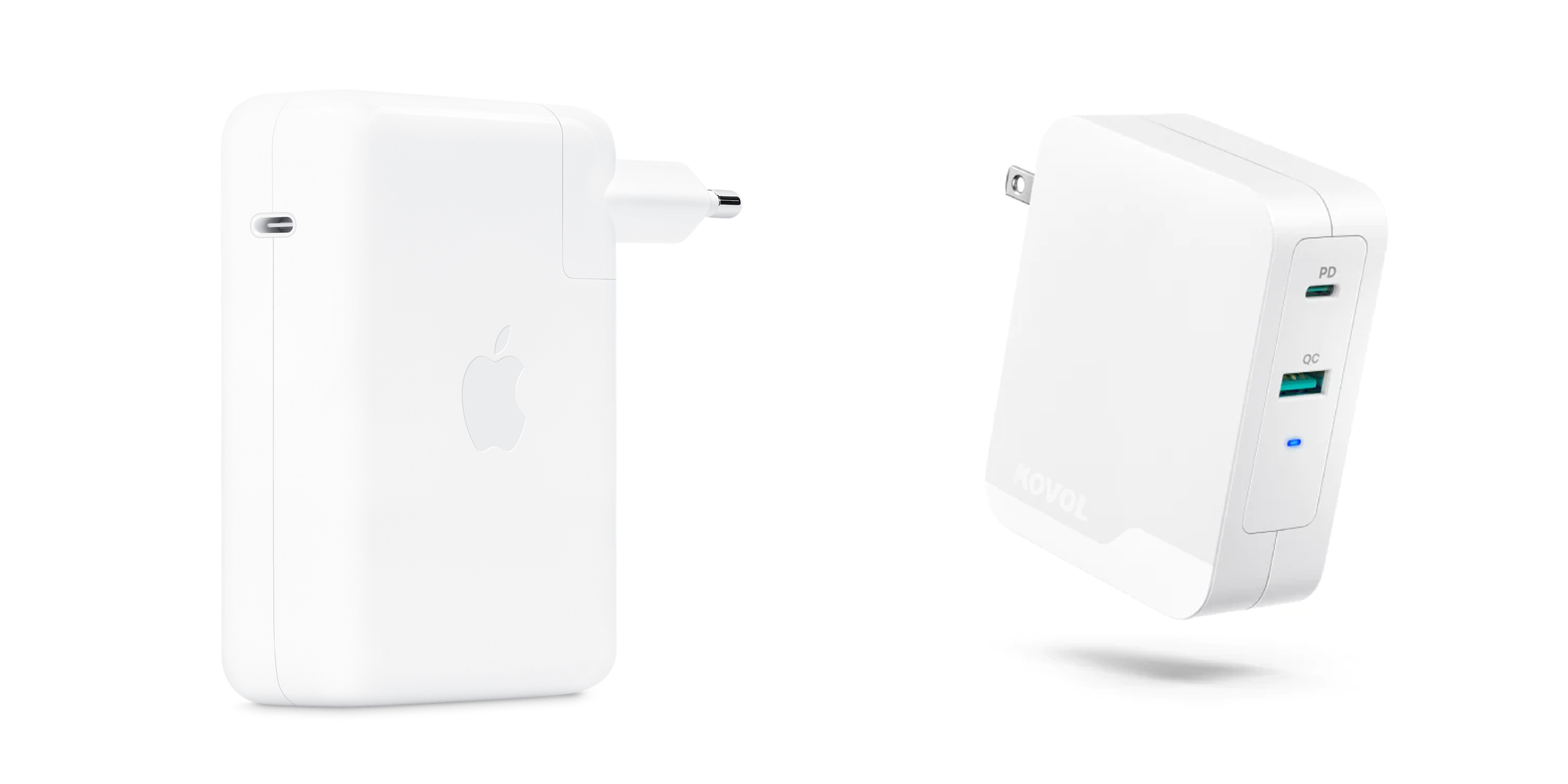 현존하는 140W 입력 기기인 '애플 맥북 프로 16인치' 모델의 충전에 사용되는 '애플 140W USB-C 전원 어댑터'와 스펙을 비교해보겠습니다. (좌측 애플 140W USB-C 전원 어댑터 vs 우측 KOVOL KV-PC019)