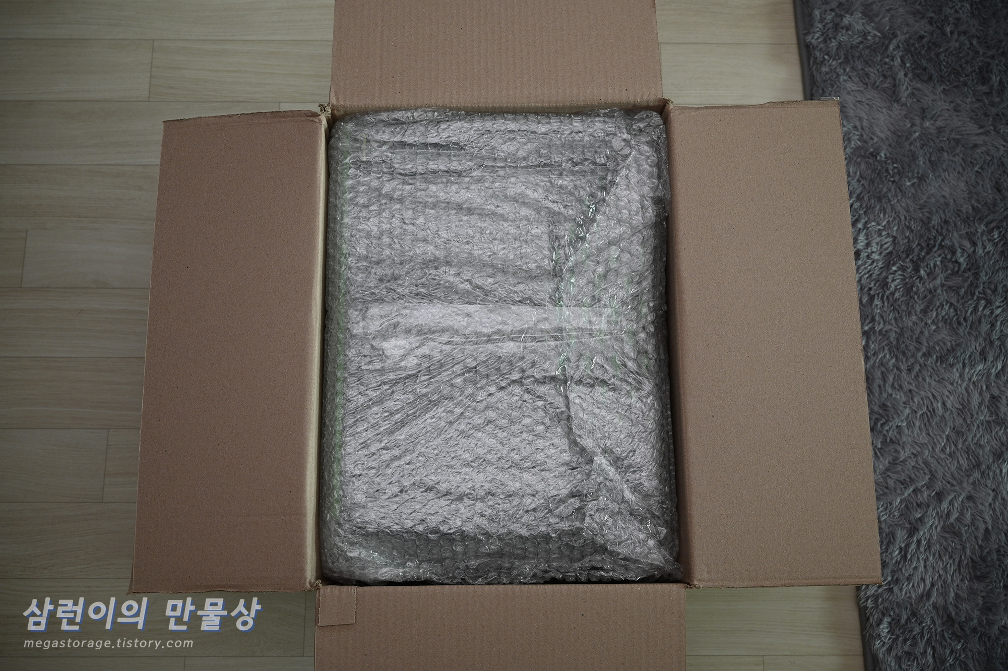 박스가 엄청 큽니다. 이 박스 안에 뾱뾱이 몇장 감기지 않은 상태로 왔습니다.