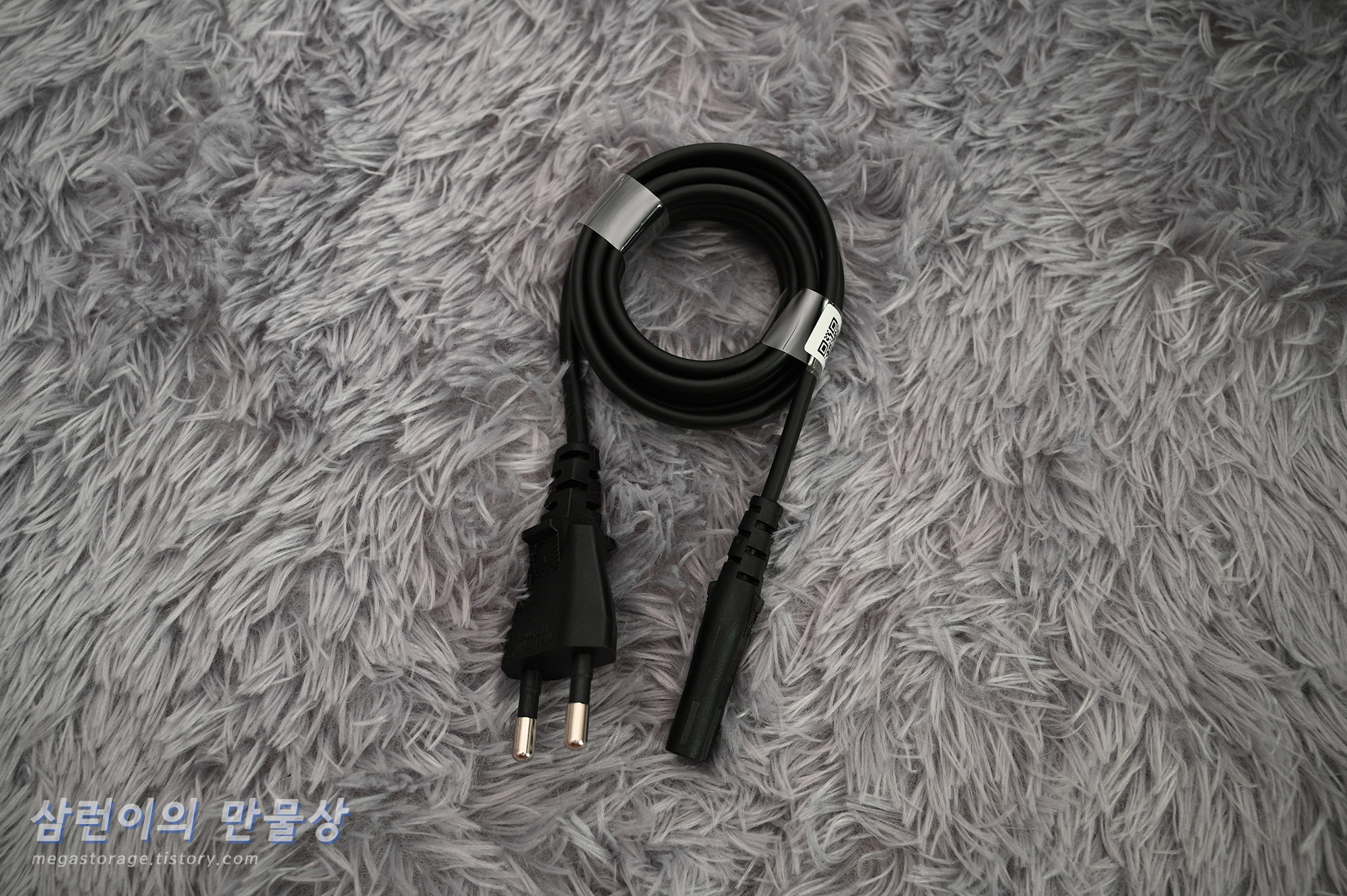 전원 케이블은 평범합니다. 접지가 없는 8자형 전원 케이블입니다.