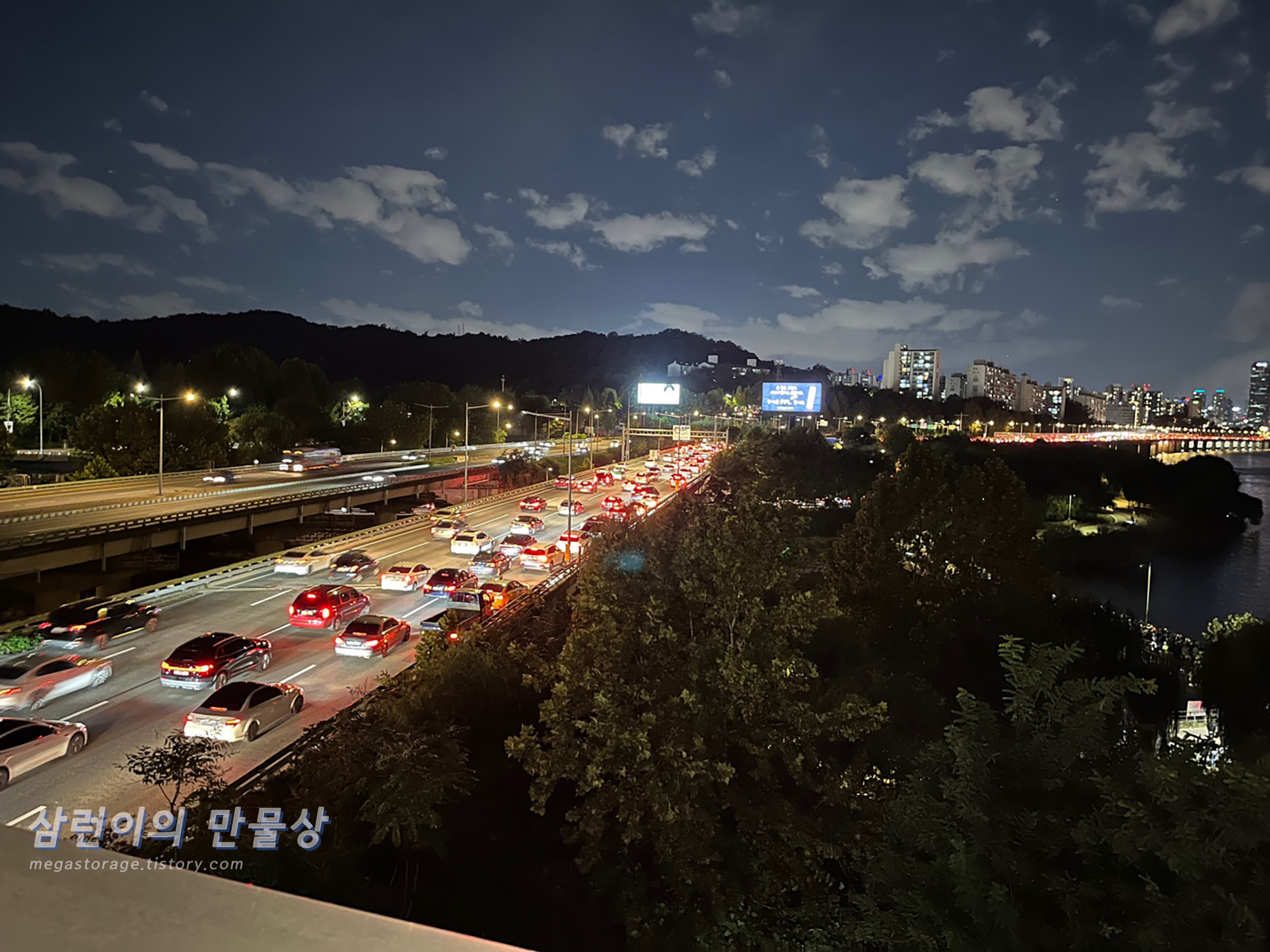 올림픽대로 3차선, 4차선에 주차 후 불꽃놀이를 관람하는 사람들... 매년 불꽃축제 할 때 마다 올림픽대로는 이렇다고 하더라구요.