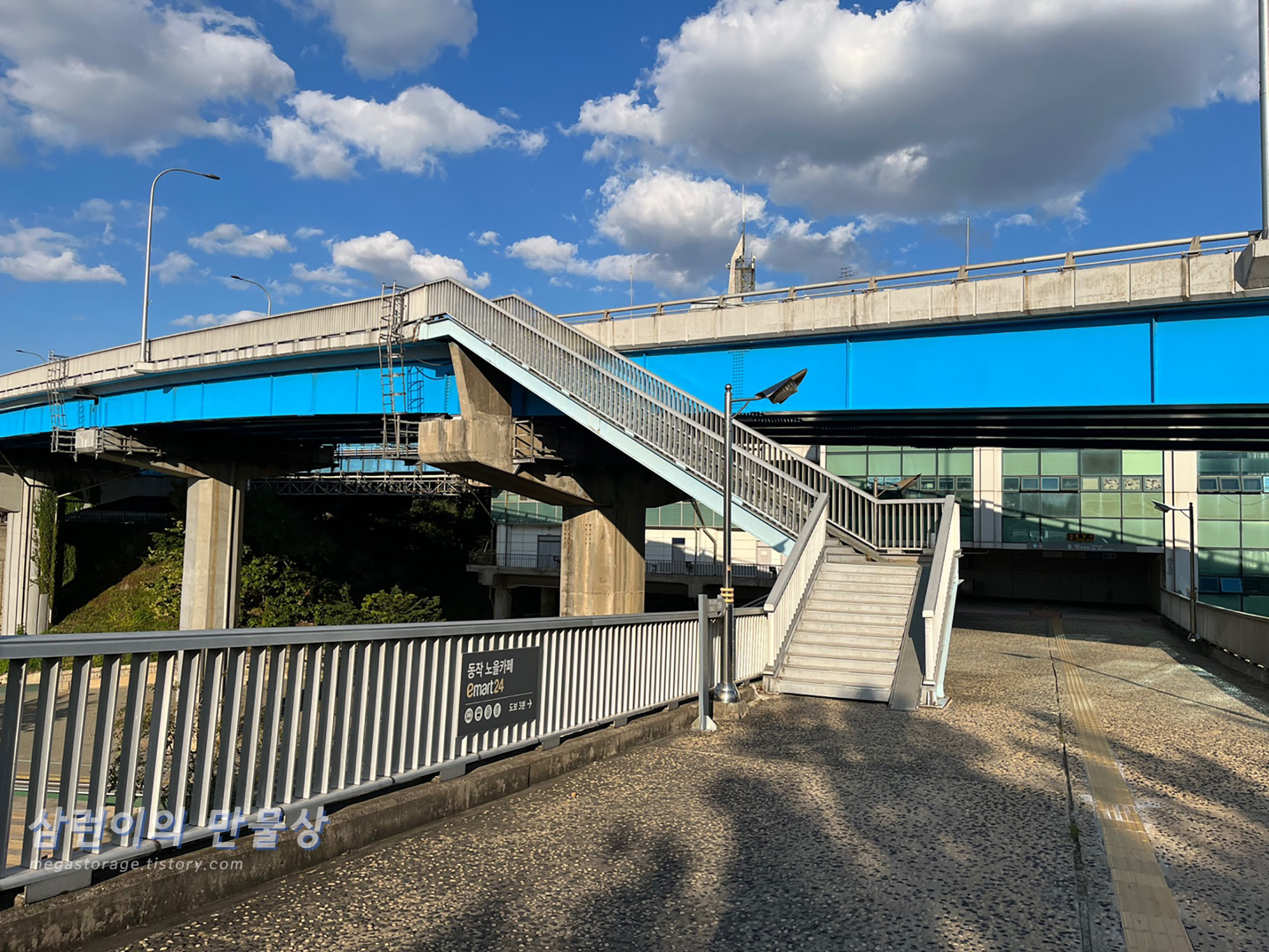 직진 방향이 동작역 2번 출구(4호선) 입니다. 좌측으로 올라가는 계단은 동작대교로 가는 길입니다.