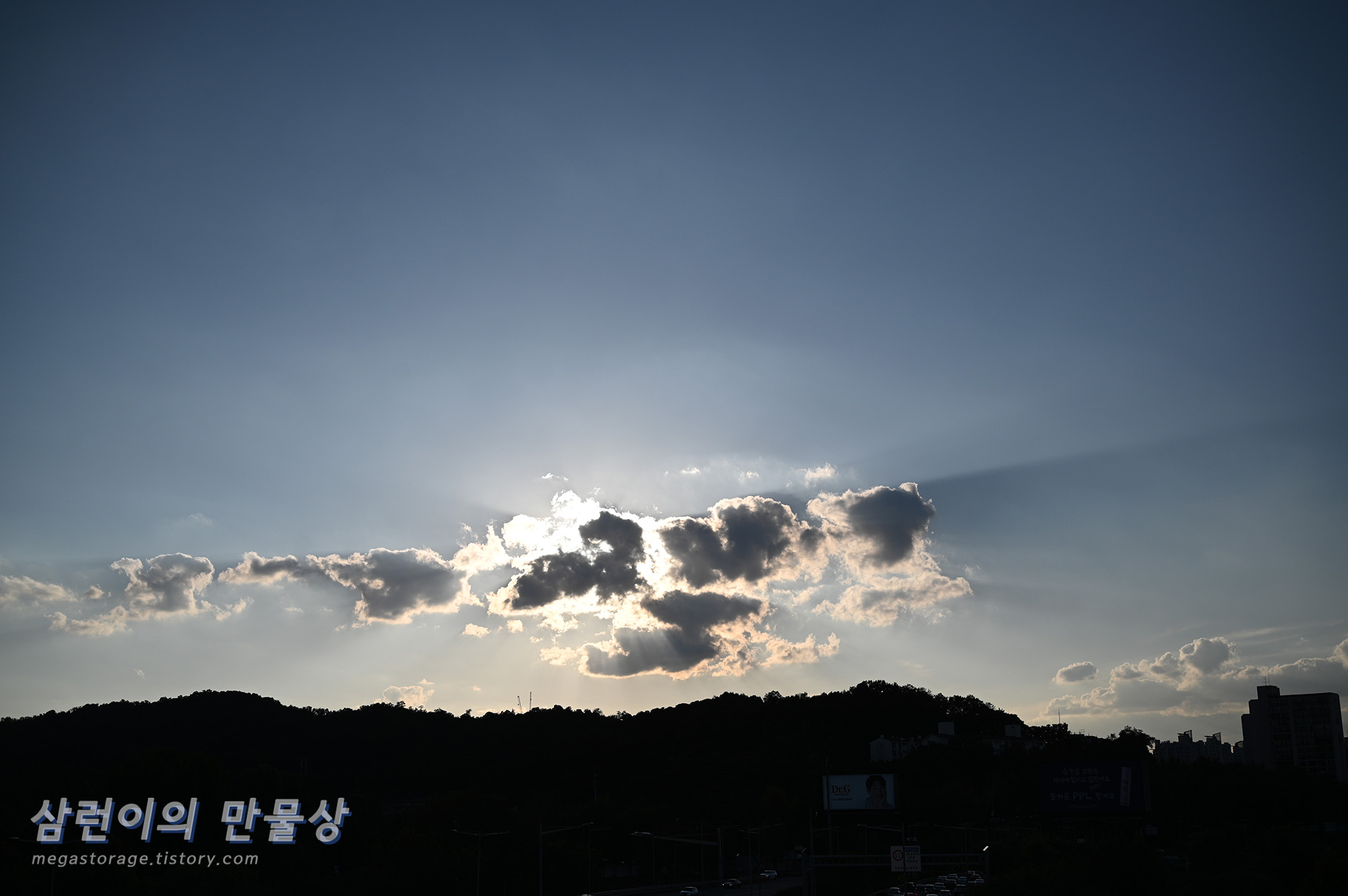 구름 사이에서 빛이 내리는 빛내림이 너무 예뻐서 찍었습니다. 보정을 조금 하면 엄청 예쁘게 될 것 같은데... 나중에 해봐야겠습니다.