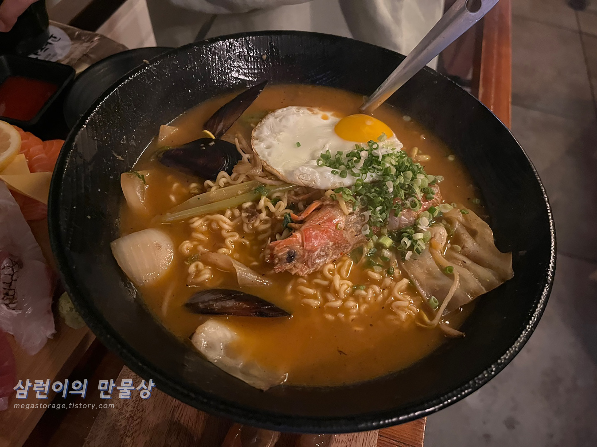- 해물라면 : 진짜 강추. 술 마시면서 해물라면 먹으니까 술이 깨는 것 같다. 근데 면이 너무 많아서 국물이 빨리 사라짐 (면이 물어서)