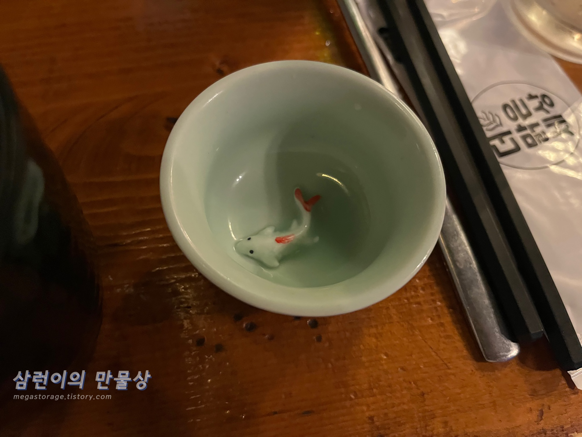 술잔이 너무 귀여웠습니다. 안에 있는 물고기가 헤엄칠 것 같아요..