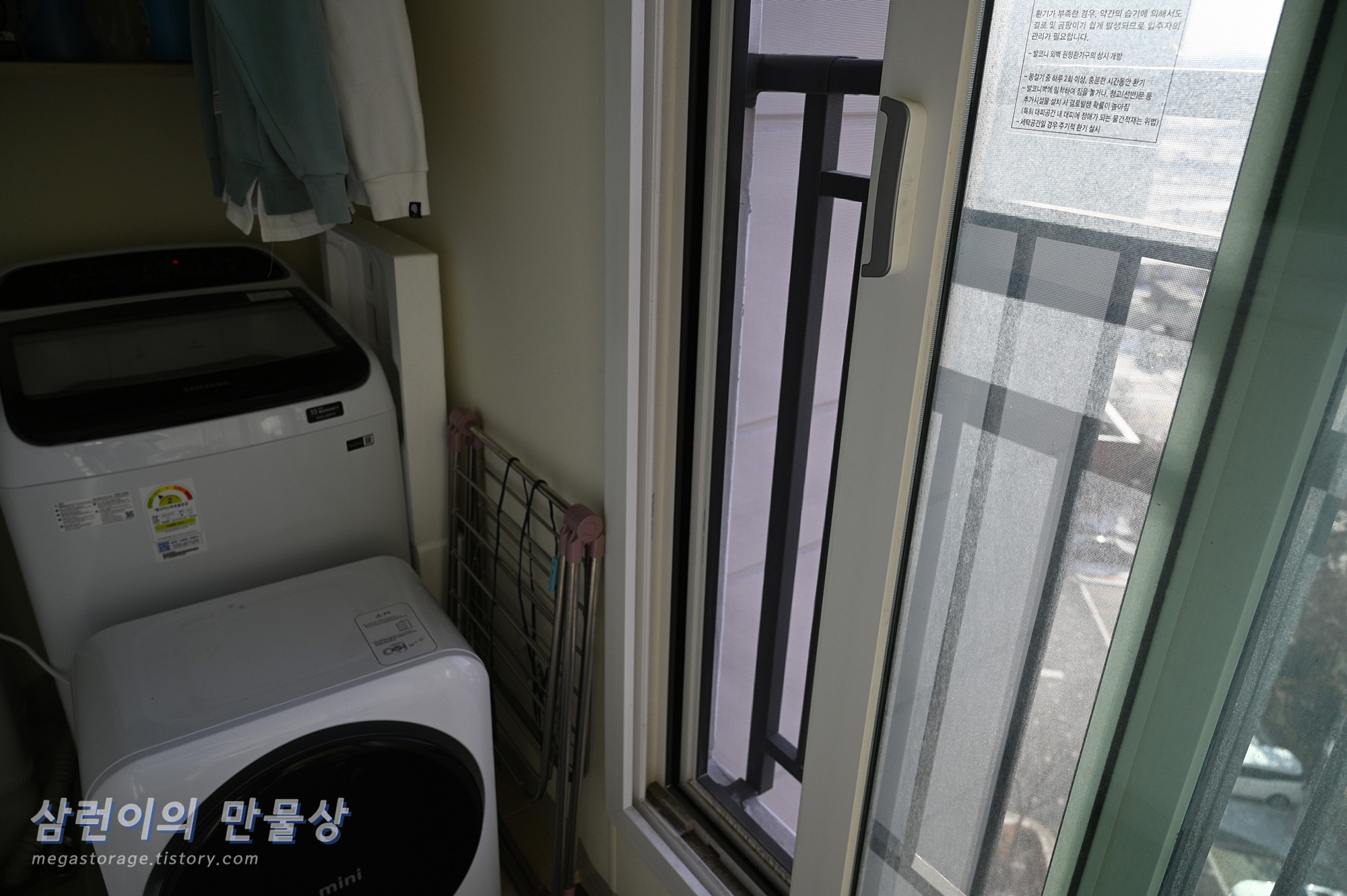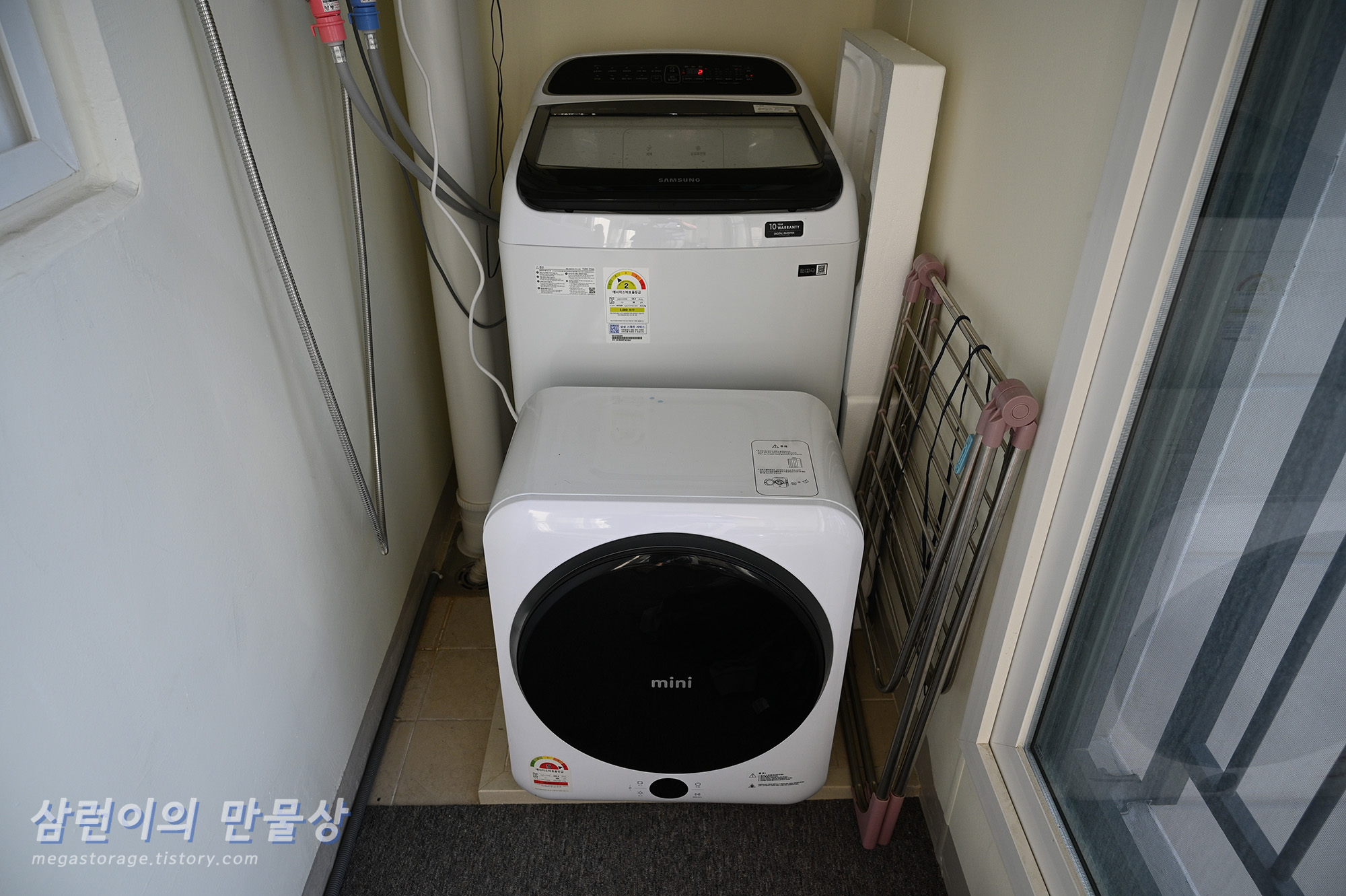 현재 7개월 가량 살고 있는 행복주택의 세탁기는 일반 세탁기(통돌이) 입니다. 그래서 세탁기 위에 건조기를 놓을 수 없습니다. 드럼 세탁기를 샀었더라면, 세탁기 위에 얹을 수 있으니까 매우 좋은데.. 그래도 개인적으론 세탁성능은 일반 세탁기가 좋다고 생각해서, 후회하진 않습니다.