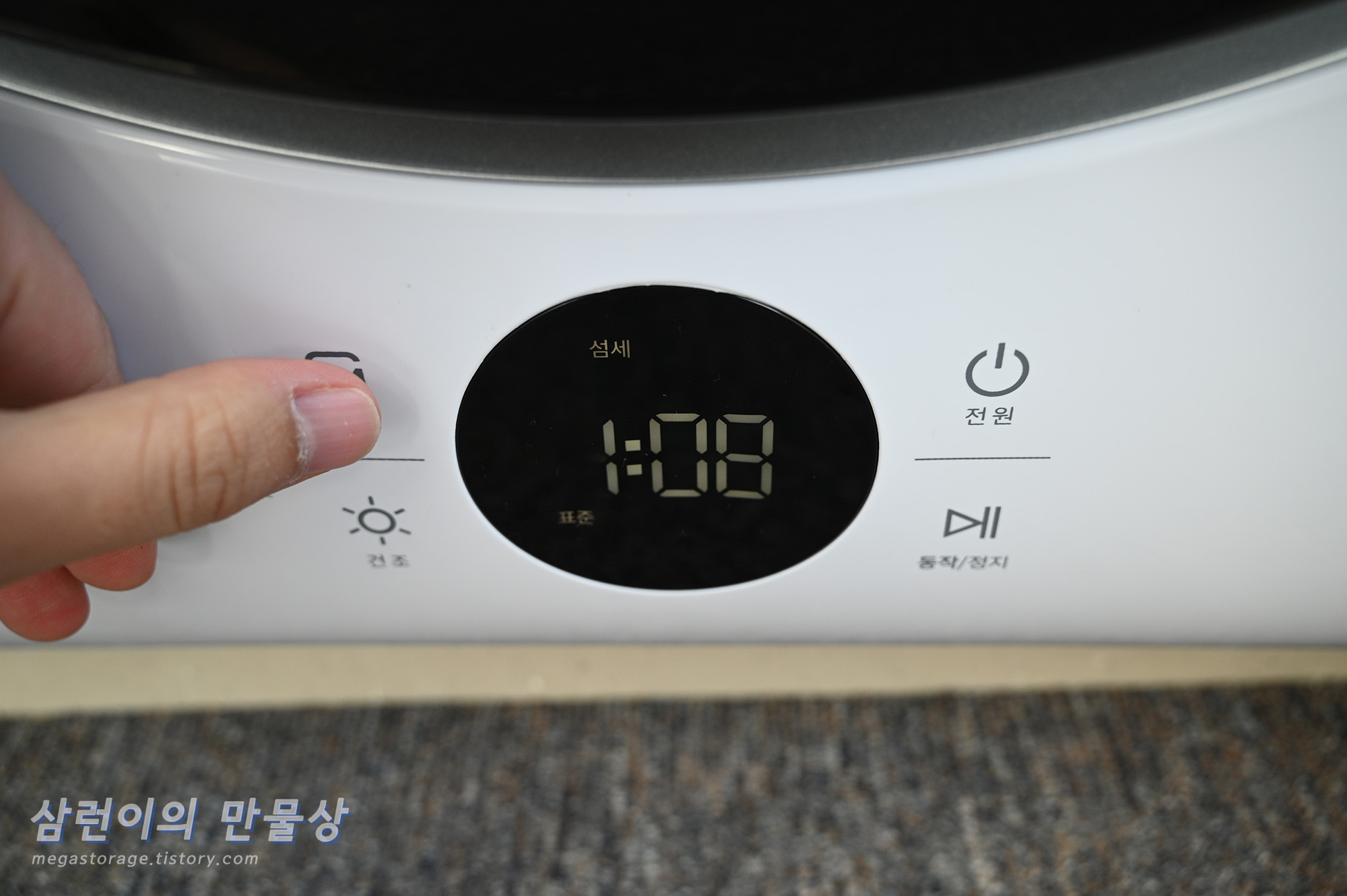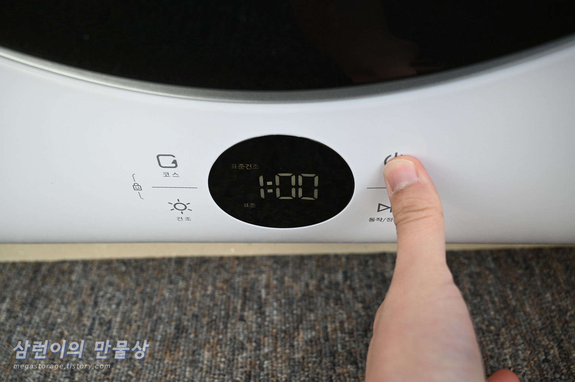 마지막으로 '동작/정지' 버튼을 누르면 건조기 가동이 시작됩니다.
