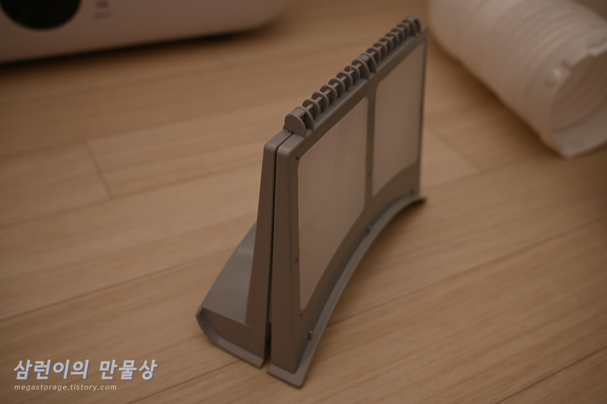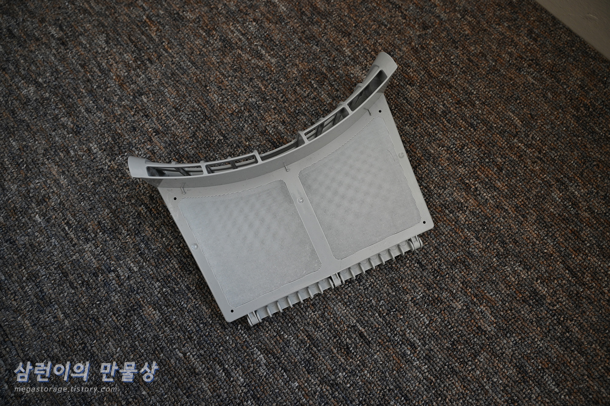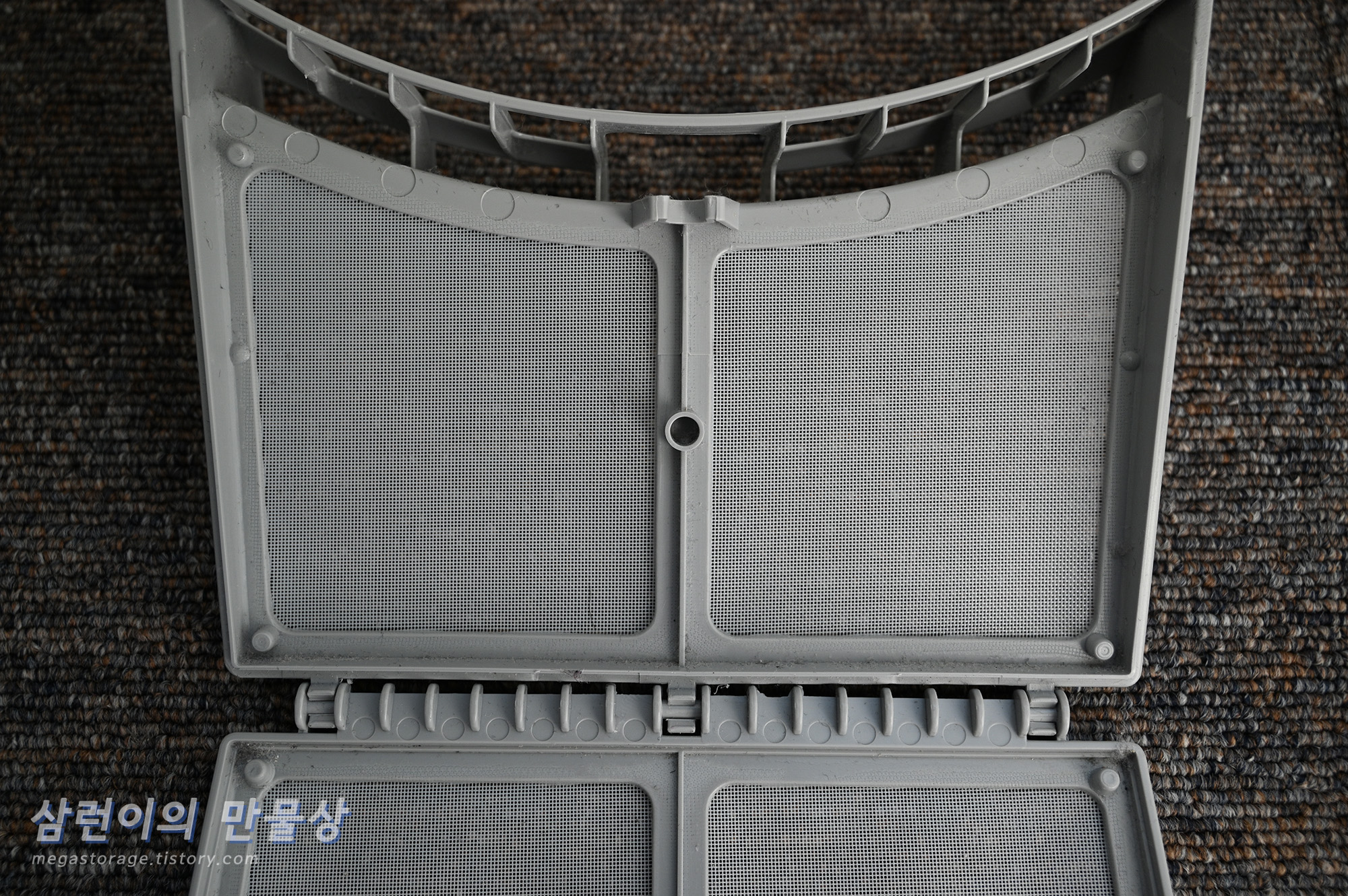 먼지 필터는 이렇게 생겼으며, 두 손으로 잡아 당기면 안쪽의 먼지를 제거할 수 있는 구조로 되어 있습니다.