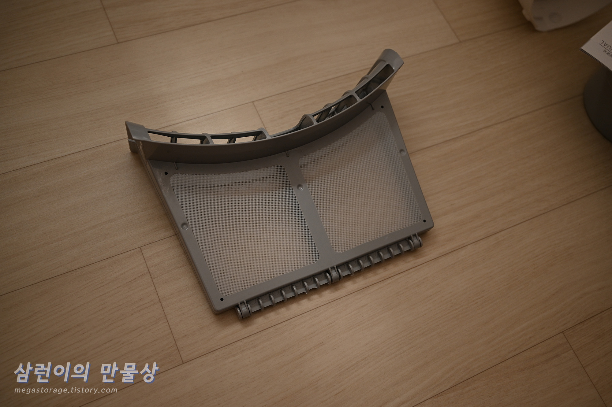 먼지가 전면부로 빠져 나가다보니, 뚜껑의 하단부에 먼지가 많이 모여있습니다. 해당 부분의 청소에 신경을 써야 됩니다.