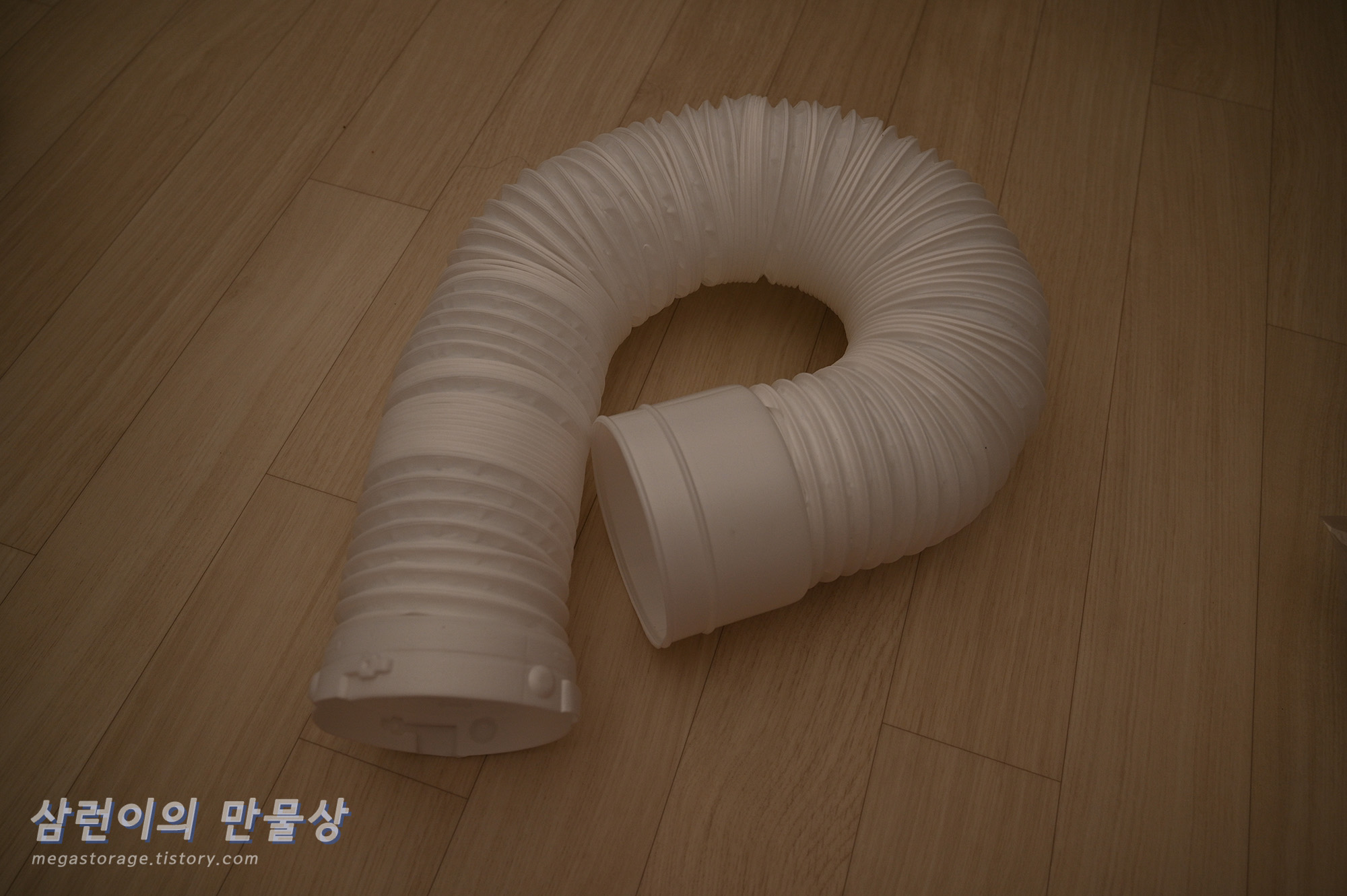건조기에서 배출되는 공기를 다른 곳으로 뺄 수 있는 관입니다. 건조기에서 나오는 먼지와 습기 때문에 위의 관이 필요할 수도 있습니다.
