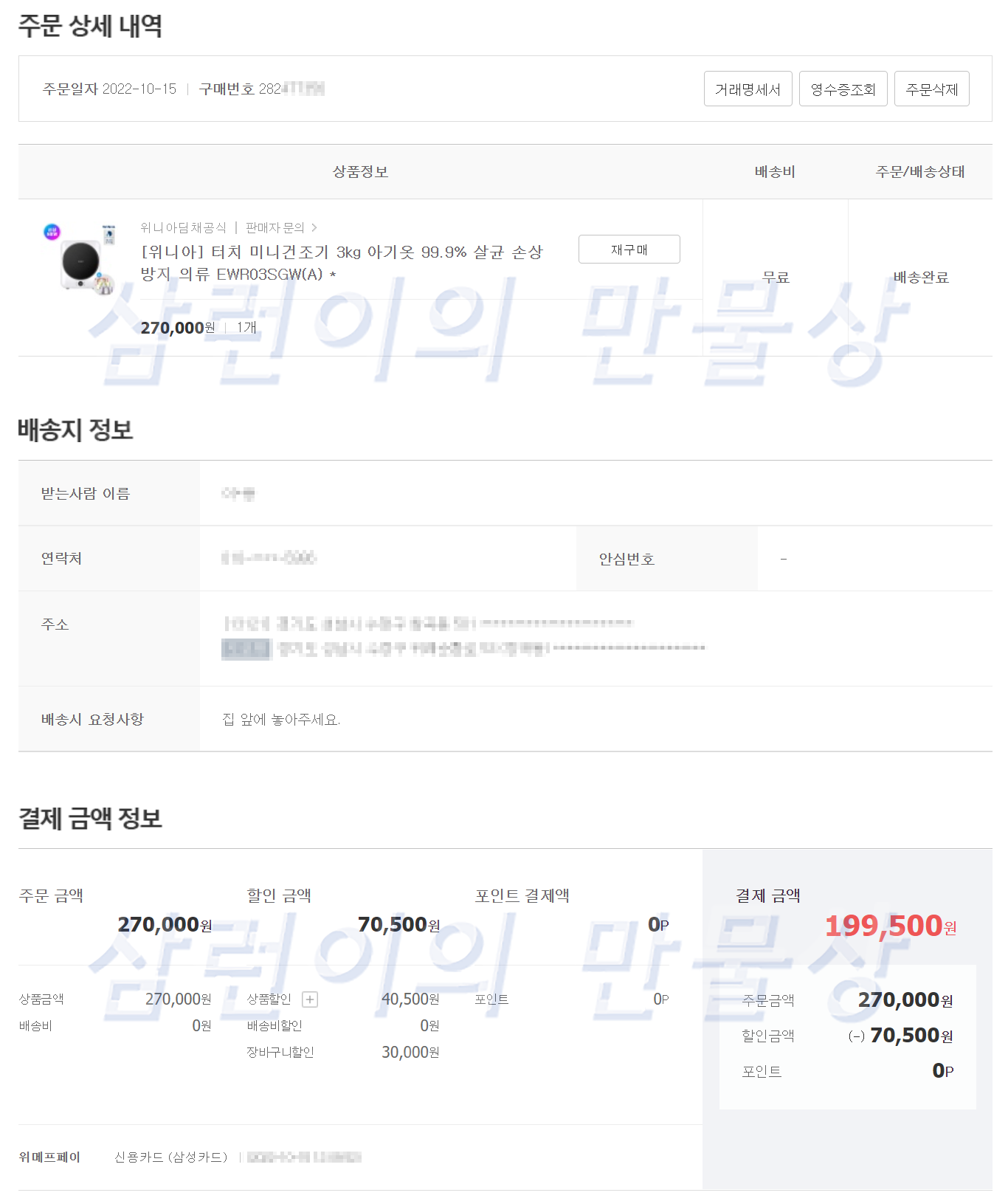 2022년 10월 15일에 위메프에서 19만 9500원에 구입했습니다.