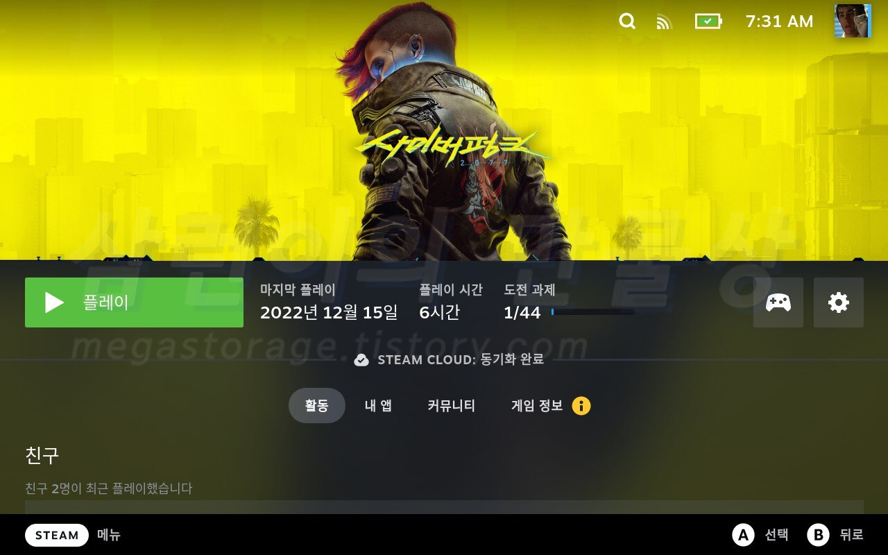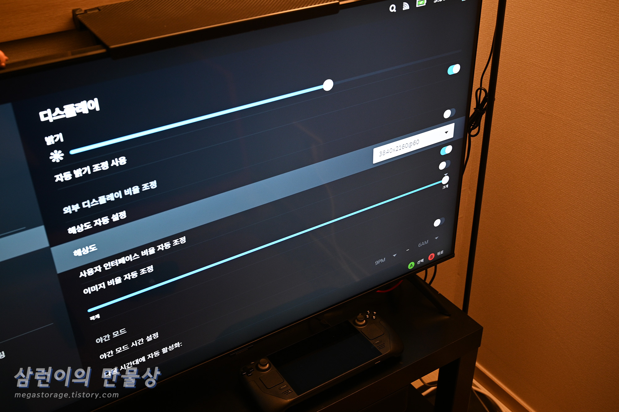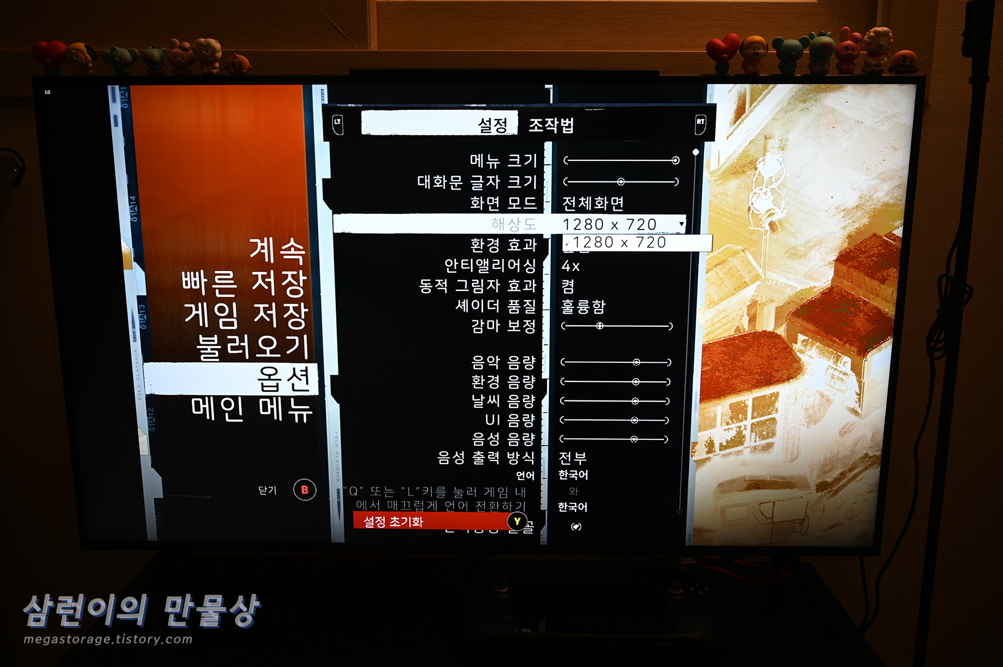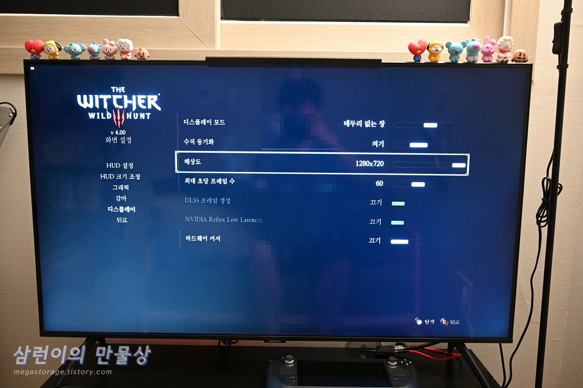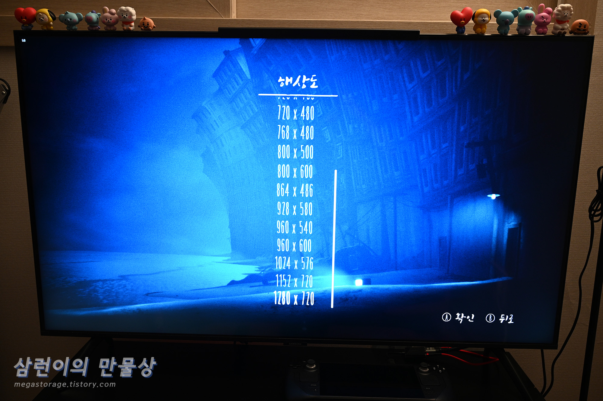 4K 디스플레이에서 720p로 실행을 하다보니 그래픽과 글자들이 매우 뭉개져서 보입니다. 물론, 스팀덱에서 4K 게이밍은 불가능한 수준입니다. 그래도 실행되는 것을 보고 싶었는데.. 아쉽습니다. 전용 독을 구입해야 하나 싶네요.