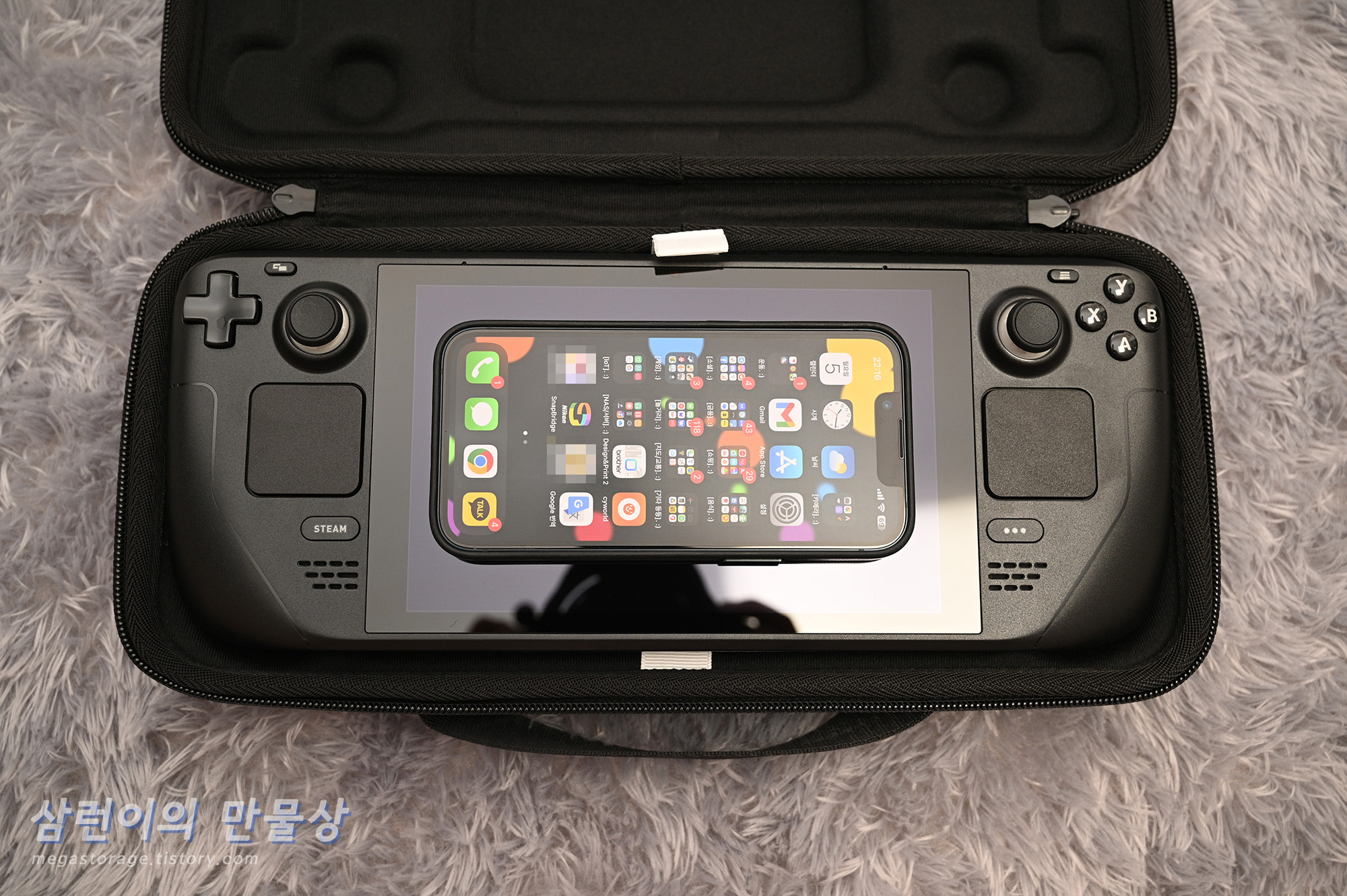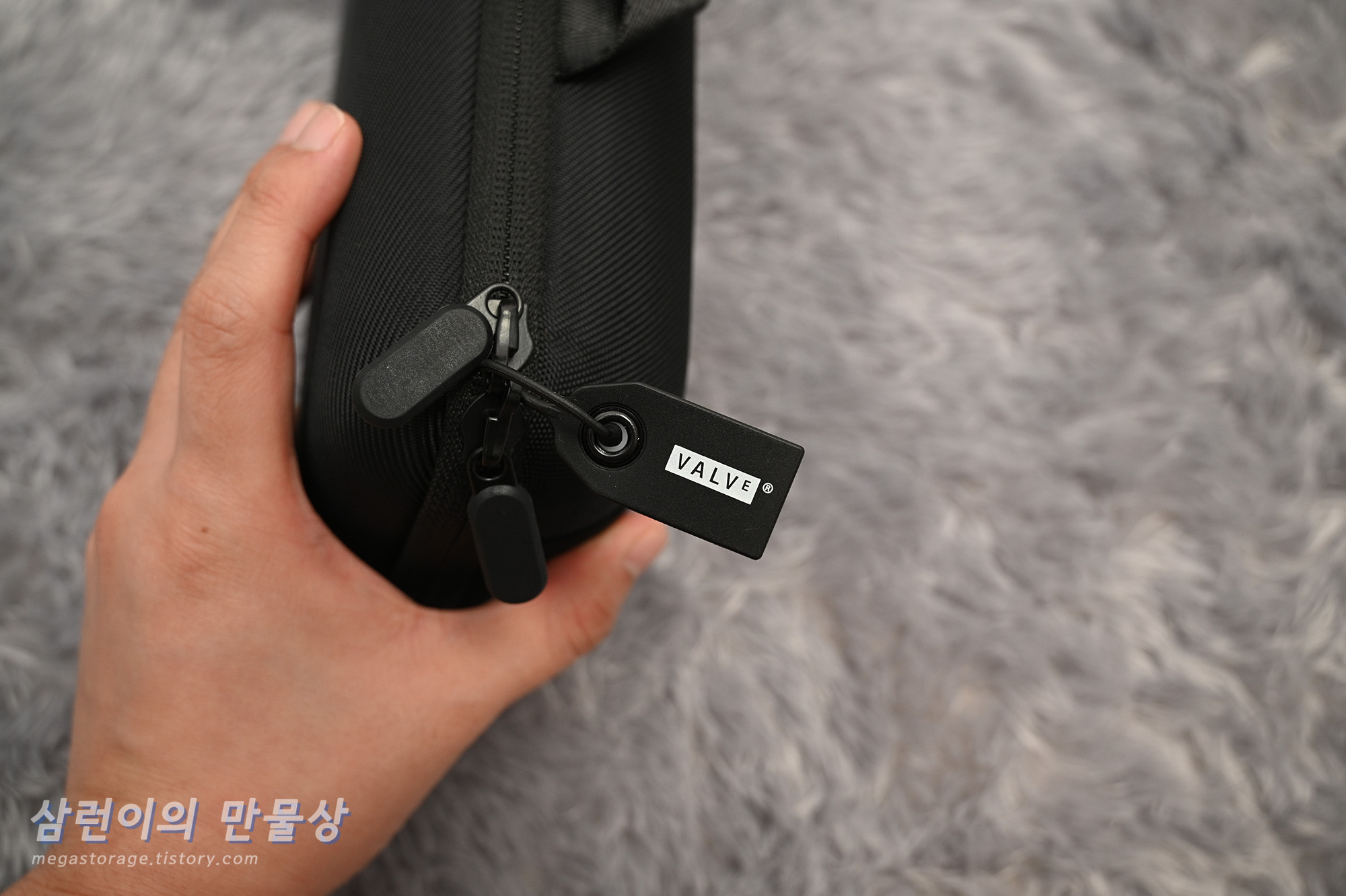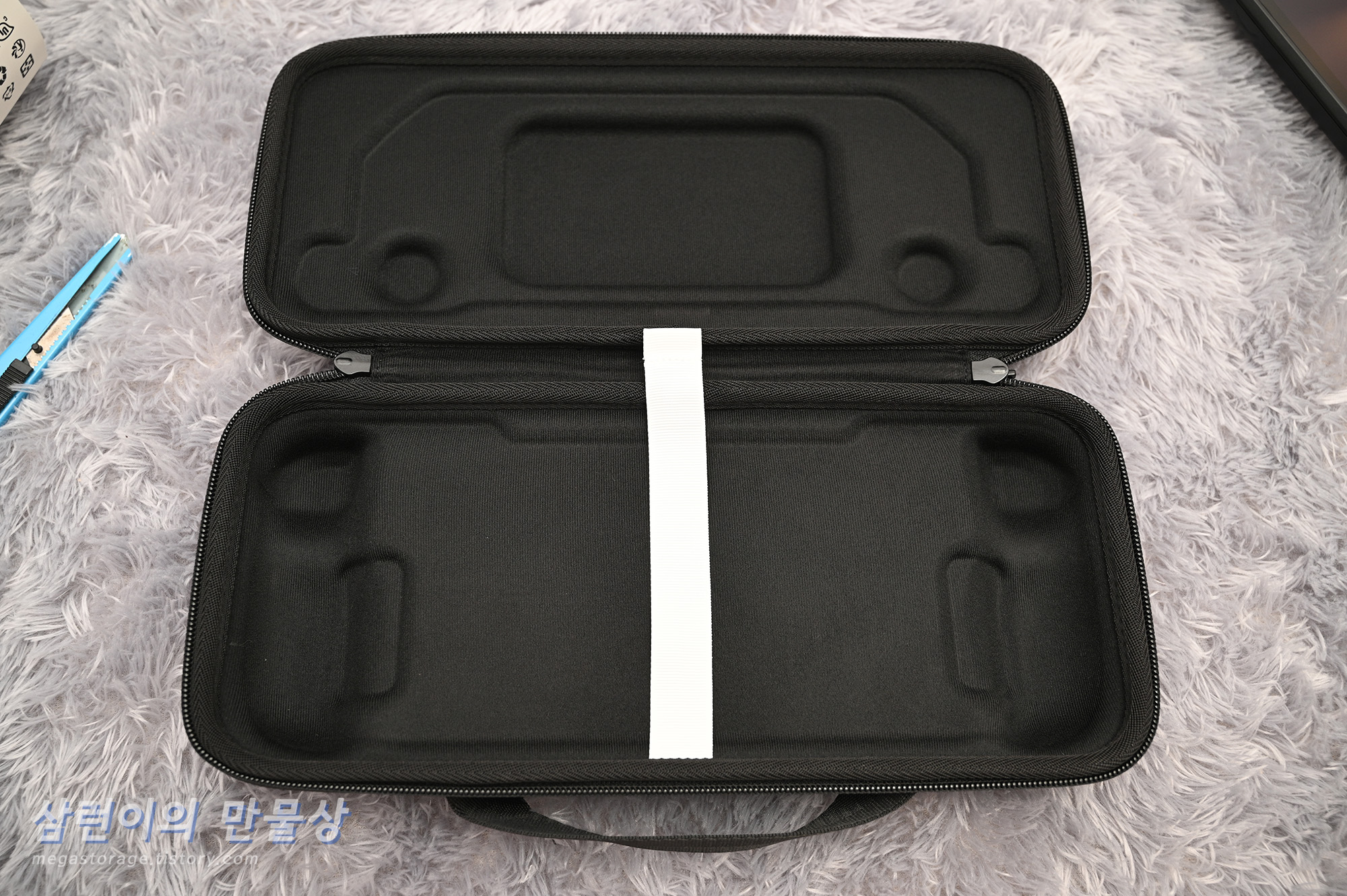 파우치 안쪽엔 스팀덱을 쉽게 꺼낼 수 있는 하얀색 끈이 있습니다. 근데 저 끈에 문제가 있는 것 같았습니다. 장시간 보관하면 스팀덱 뒷면에 하얀색 자국이 남는(..) 문제가 있어서, 신형 파우치에는 저 끈이 제거되었다는 이야기를 들었습니다.