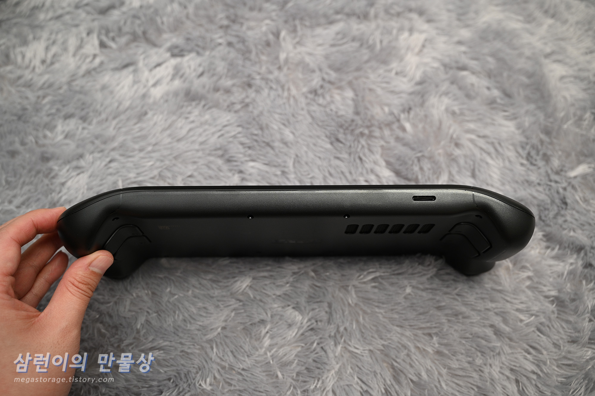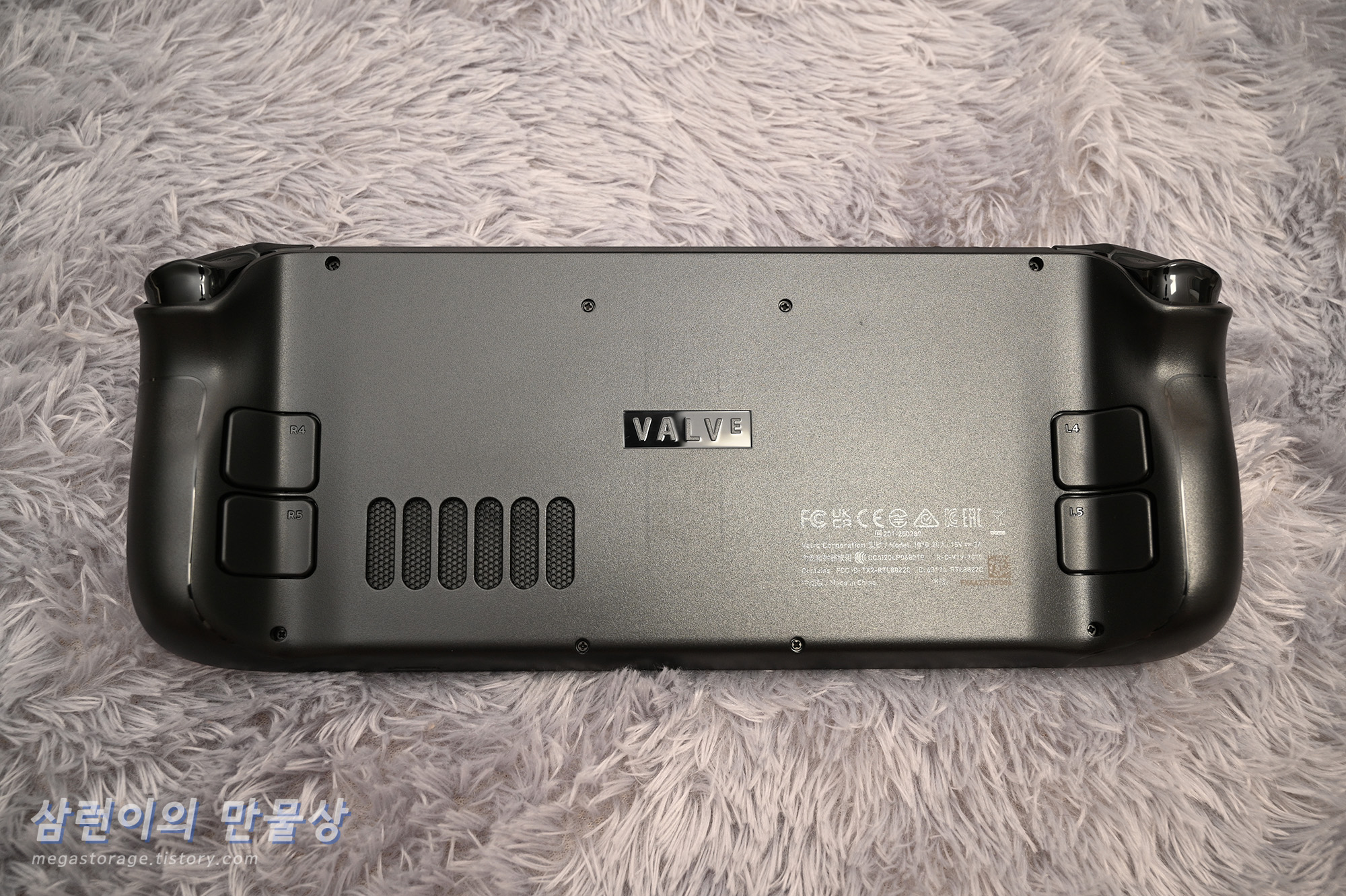뒷면엔 R4/R5키와 L4/L5키가 있습니다. 공기 흡입구도 있습니다. 스팀덱은 뒷면으로 공기를 흡입한 후 상단으로 열기를 배출합니다.
