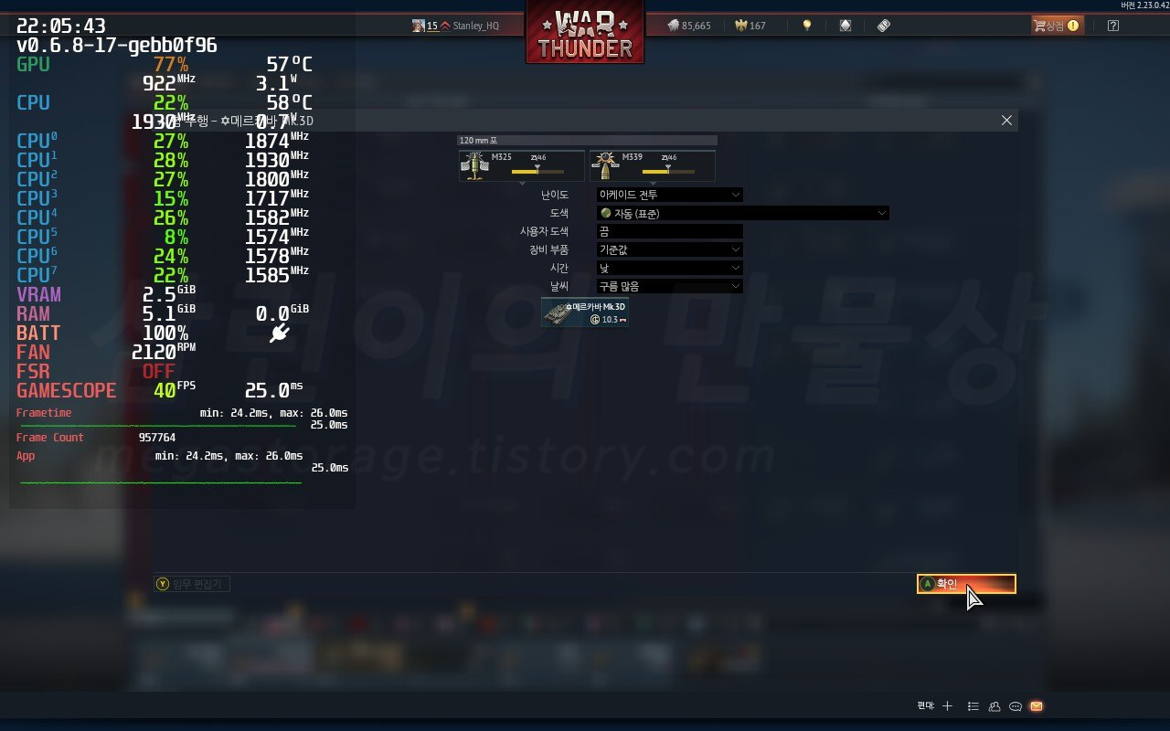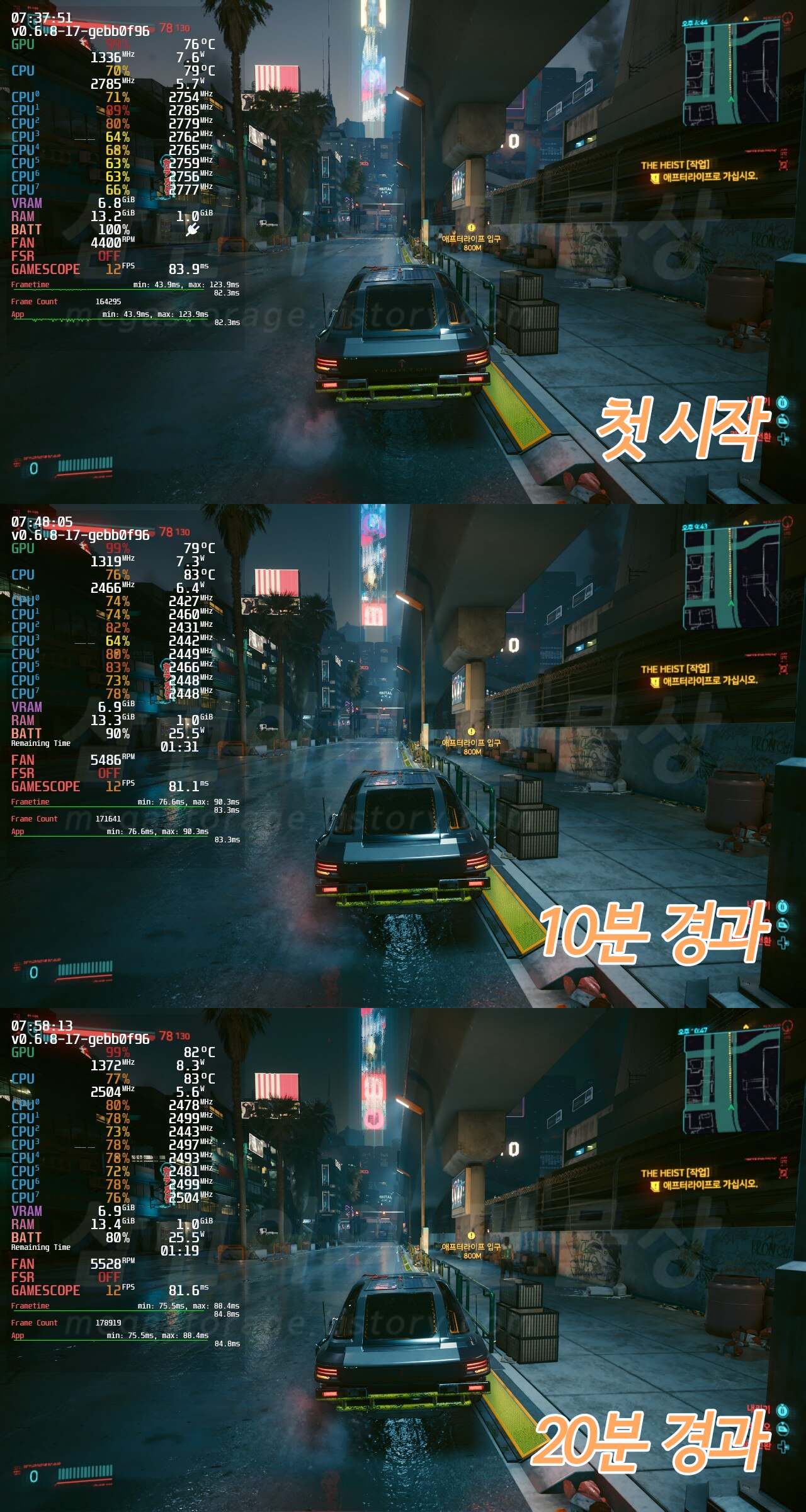 스팀덱의 배터리/발열/성능 체크를 위해, 아래의 조건으로 테스트를 진행했습니다.