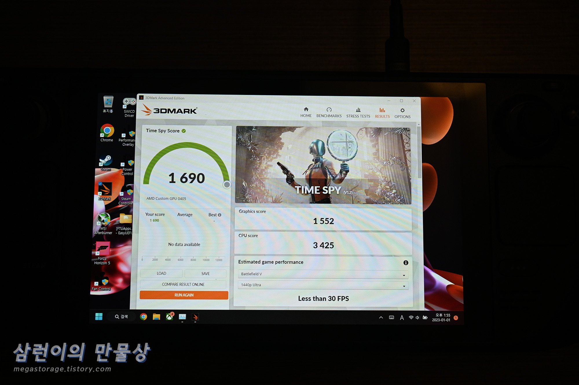 윈도우 설치 후, 벨브에서 공식으로 제공하는 드라이버를 모두 설치하고 3DMark를 돌려봤습니다.