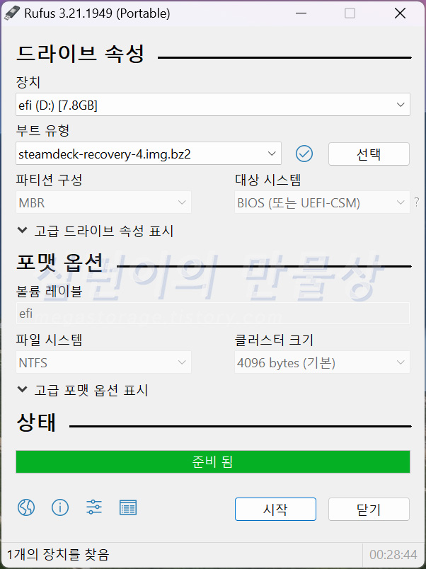그리고 기다리면 SteamOS 설치 USB 제작이 완성됩니다. 성능이 좋지 않은 USB 메모리에 작업을 했더니, 무려 28분 48초가 소요되었습니다.