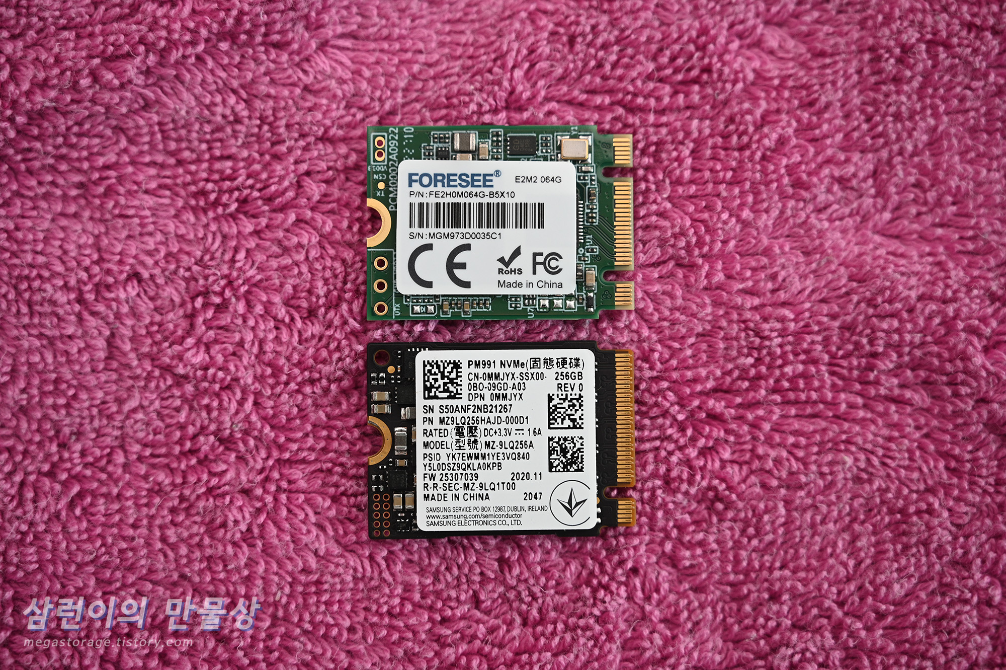 기존의 64GB eMMC SSD와 교체할 256GB NVMe SSD의 비교입니다.
