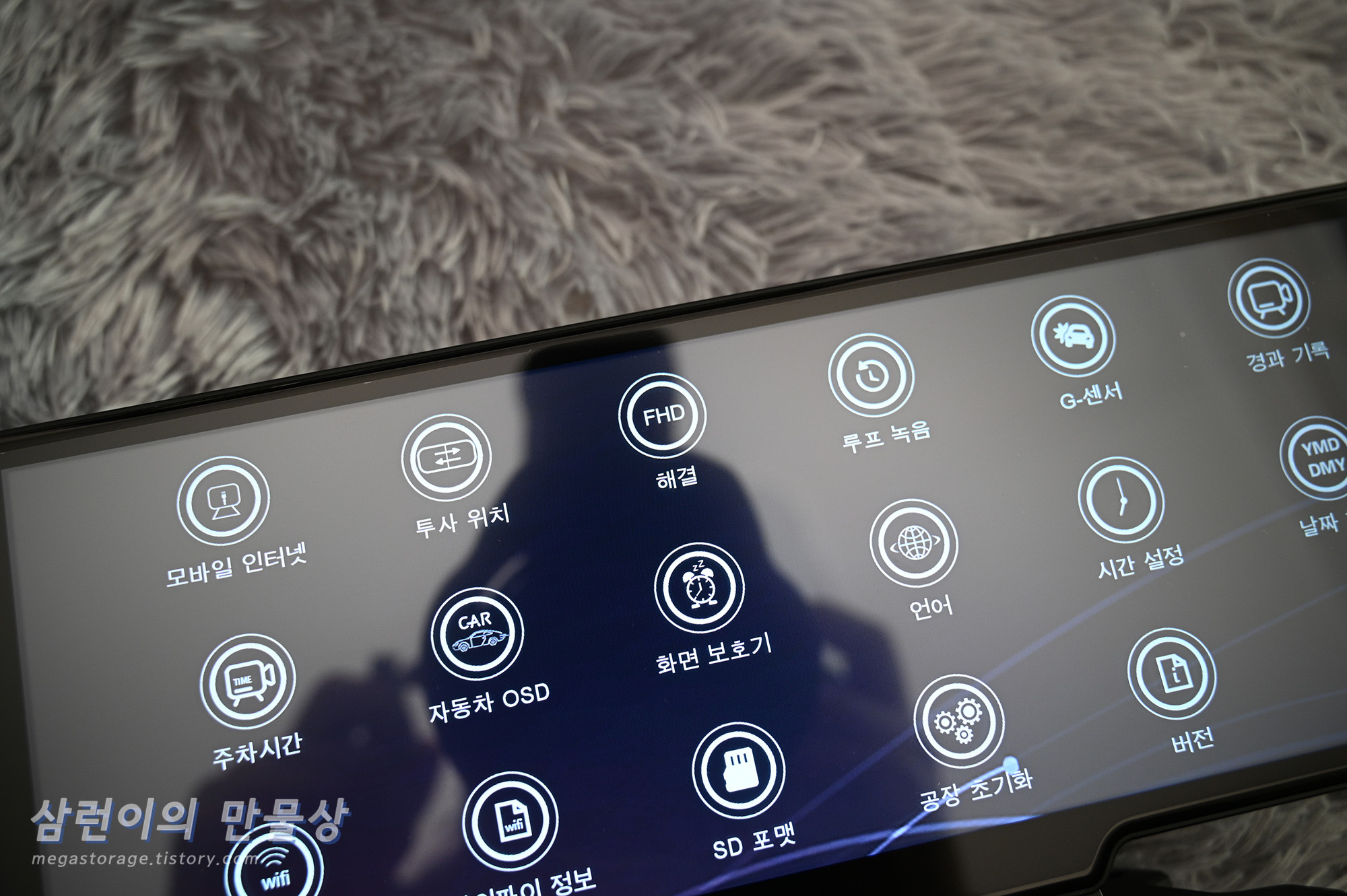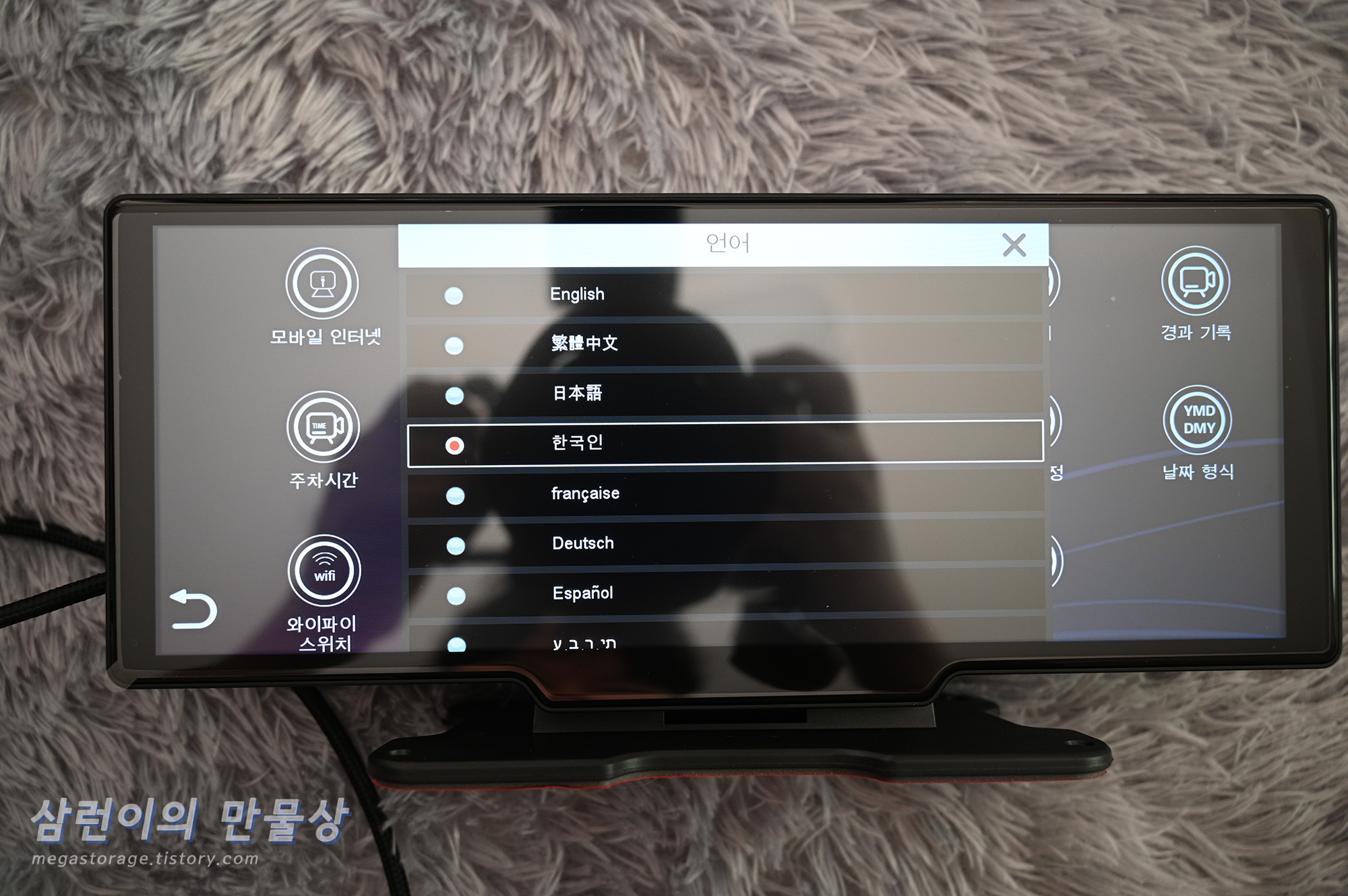 부착 완료했습니다. 바닥이 완전하게 평평하지 않아서 살짝 불안정합니다. 근데 부착 위치와 디스플레이 크기가 아주 맘에 듭니다.