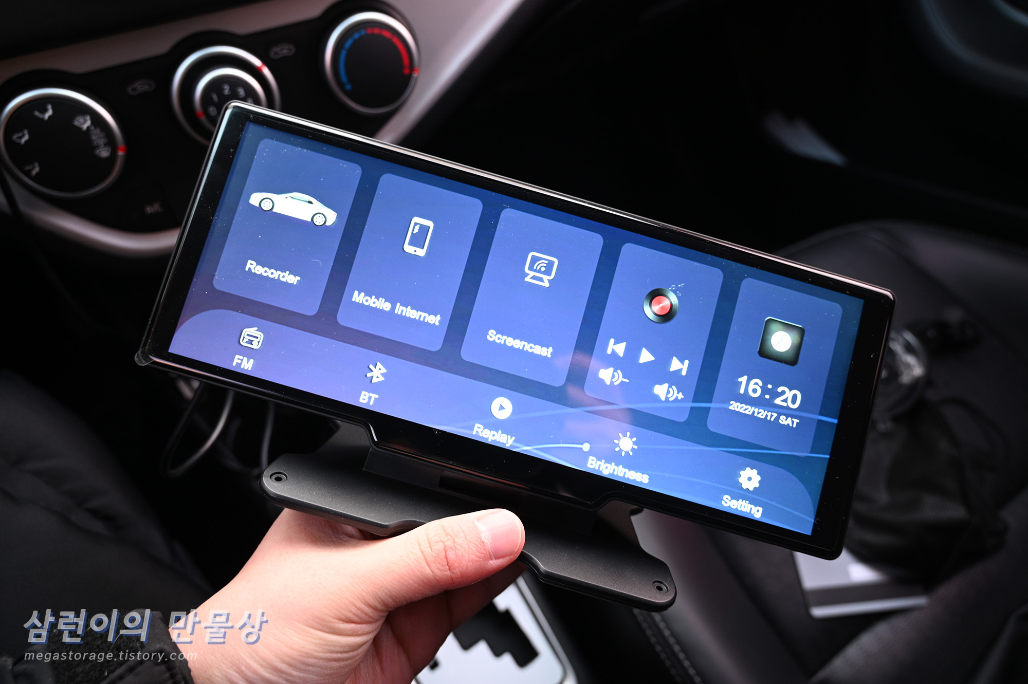 부팅 직후에 볼 수 있는 메인화면입니다. 만약 폰이랑 블루투스 연결이 되면, 자동으로 카플레이 또는 안드로이드 오토 화면으로 넘어갑니다.