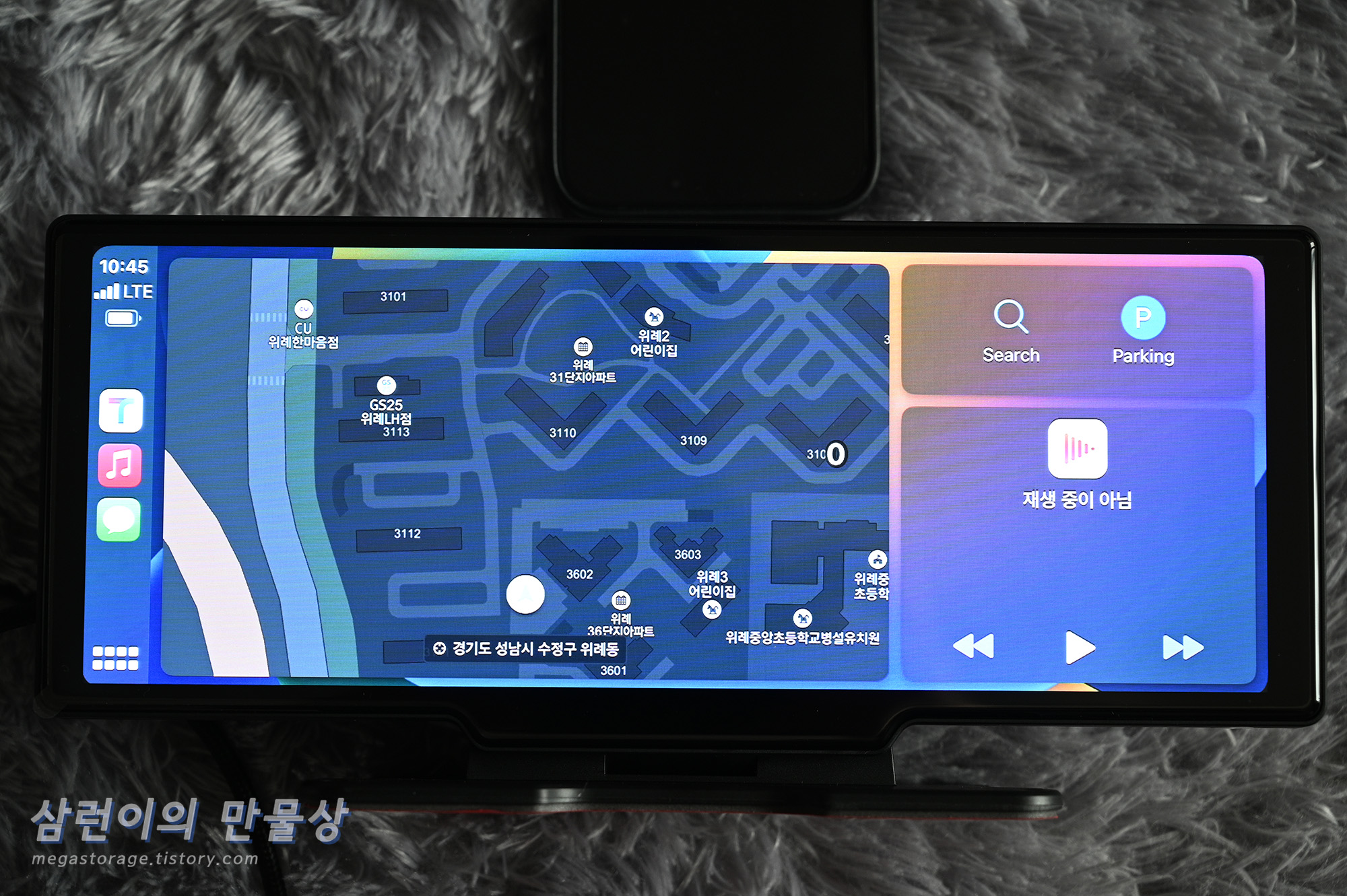 정면에서 바라본 디스플레이 모습입니다. 카플레이는 매우 넓게 나와서 좋네요.
