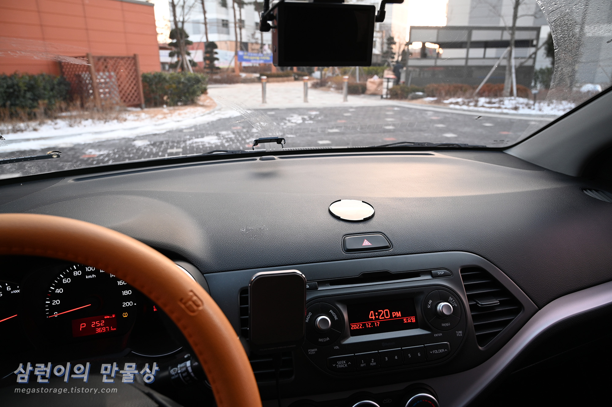 2016년식 모닝입니다. 비상깜빡이 버튼 주변에 설치할 계획입니다.
