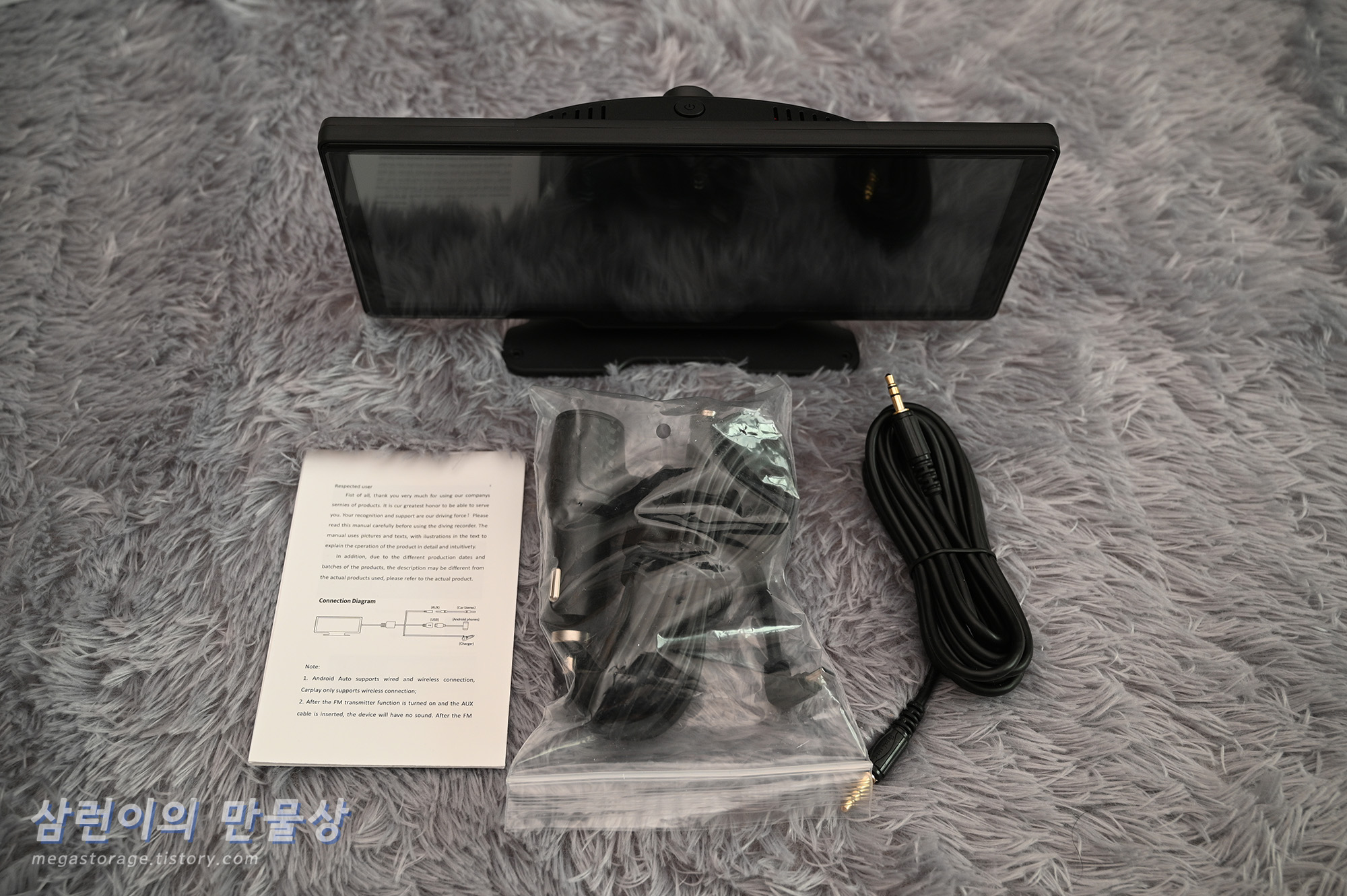 AUX 케이블이 있습니다. 디스플레이의 소리를 자동차에 출력할 때 사용합니다.