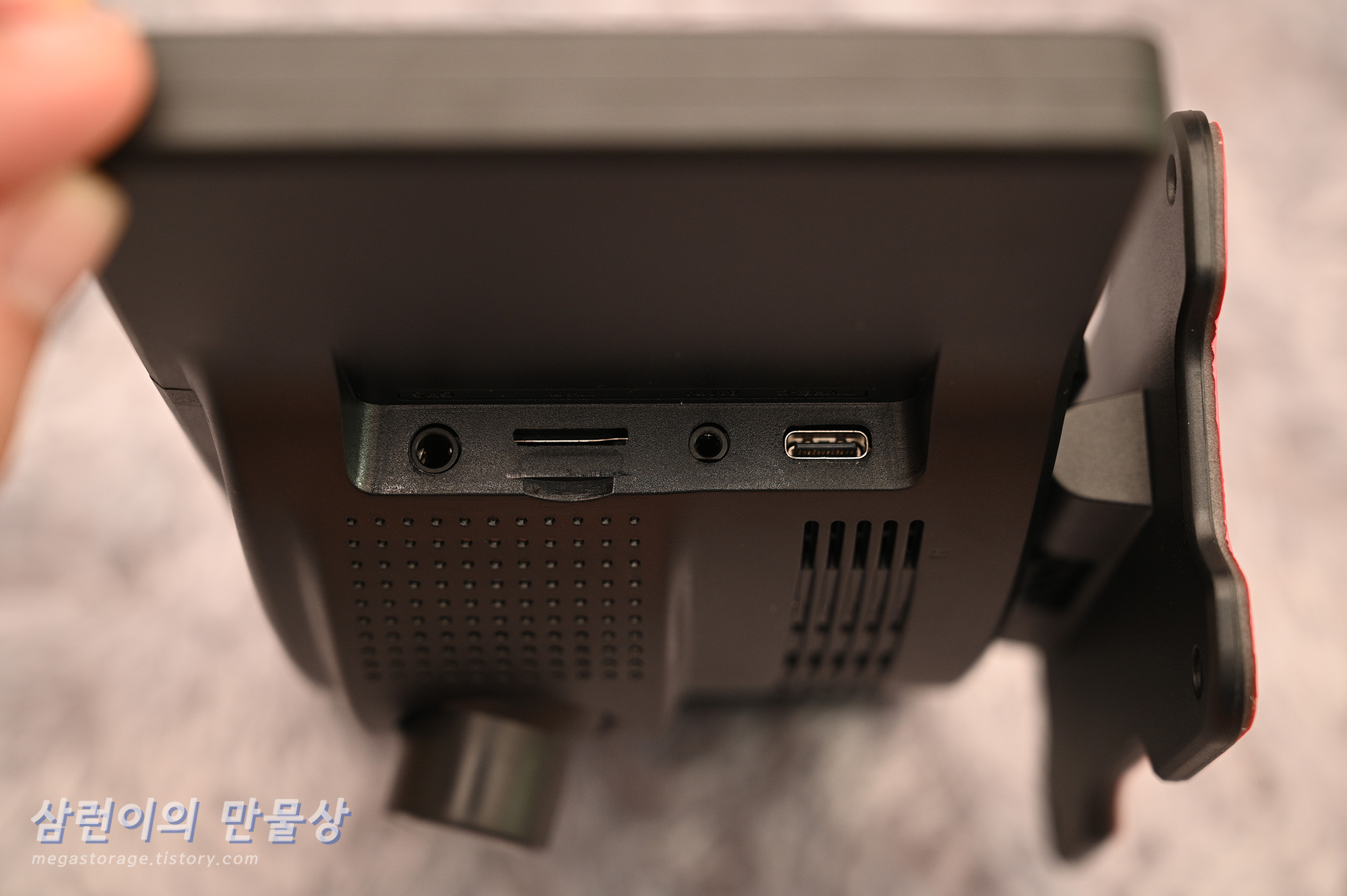 좌측부터 AUX, micro SD 카드 슬롯, GPS 및 전원 단자입니다.