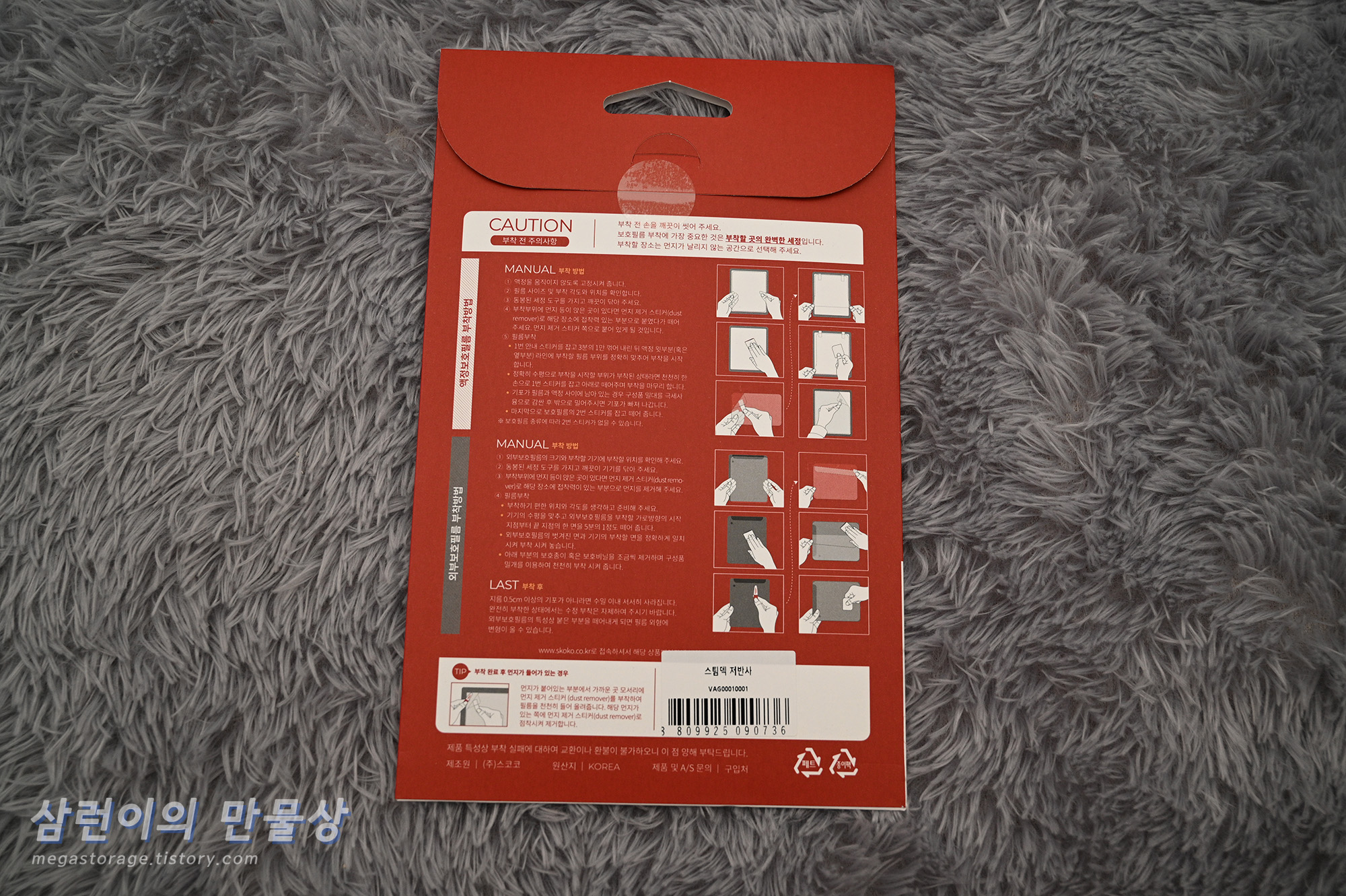 보호필름 포장지 뒷면에는 보호필름 부착 방법에 대한 설명이 있습니다.