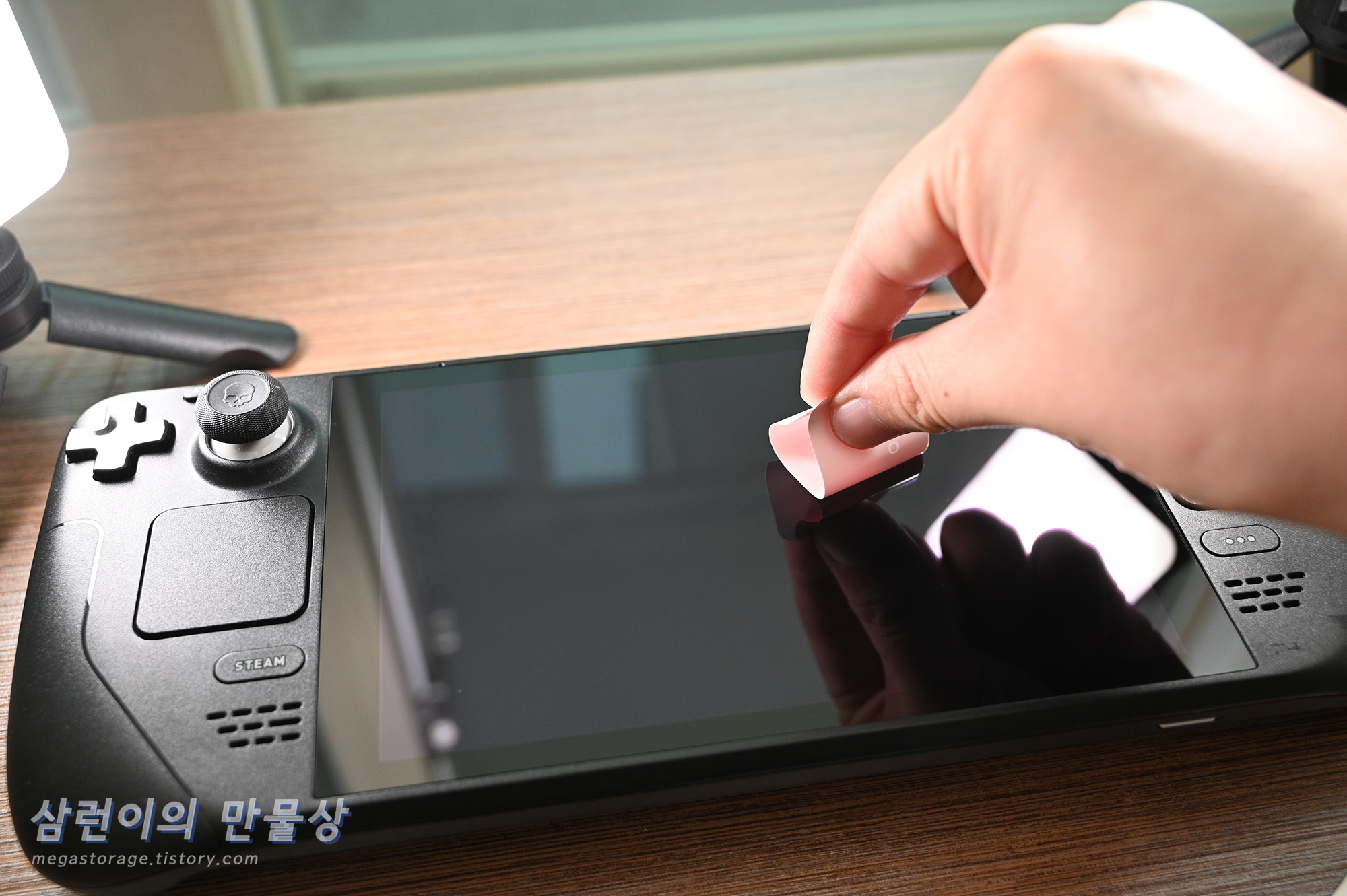 스팀덱용 스코코 지문방지 보호필름 부착 준비