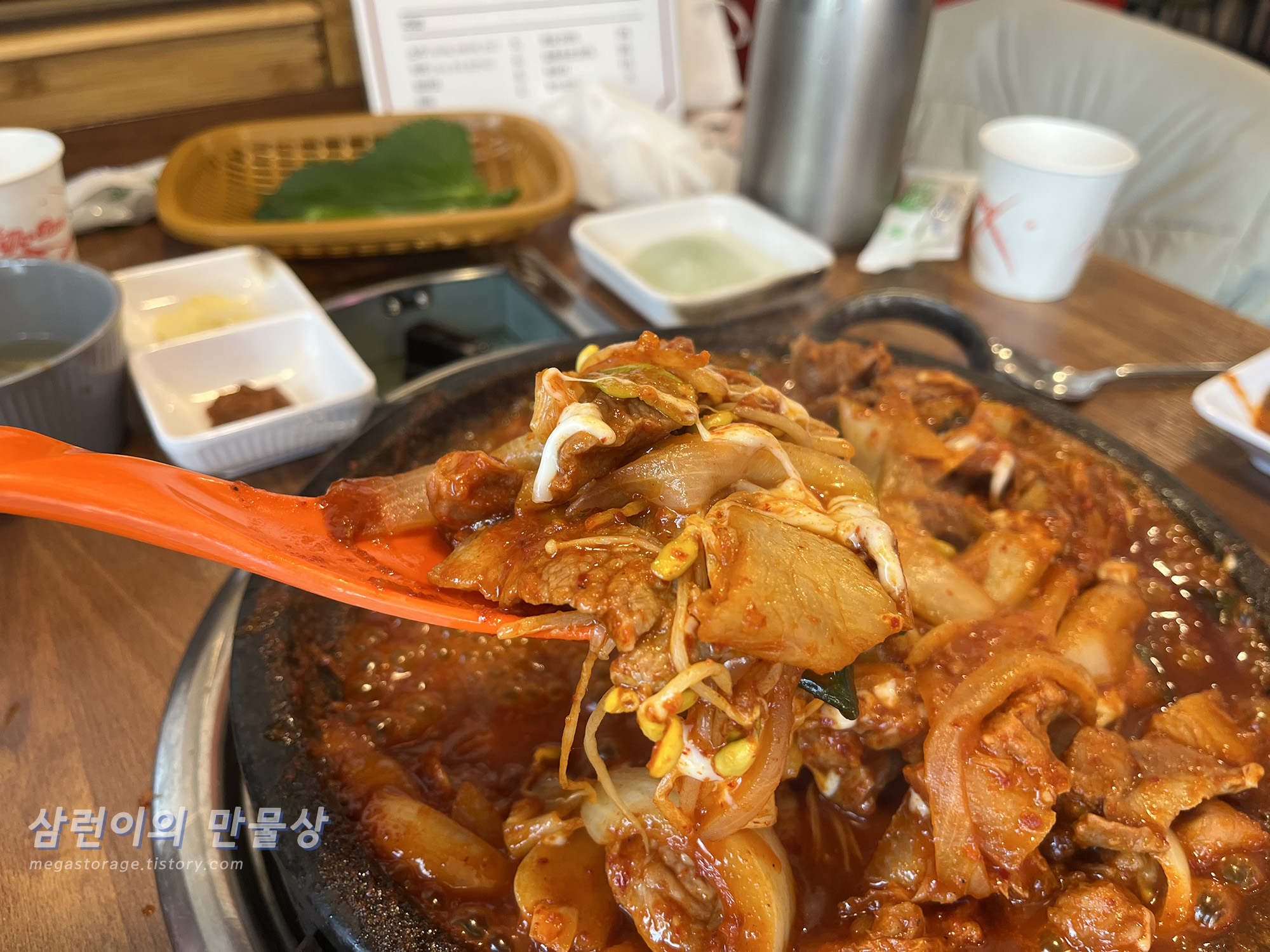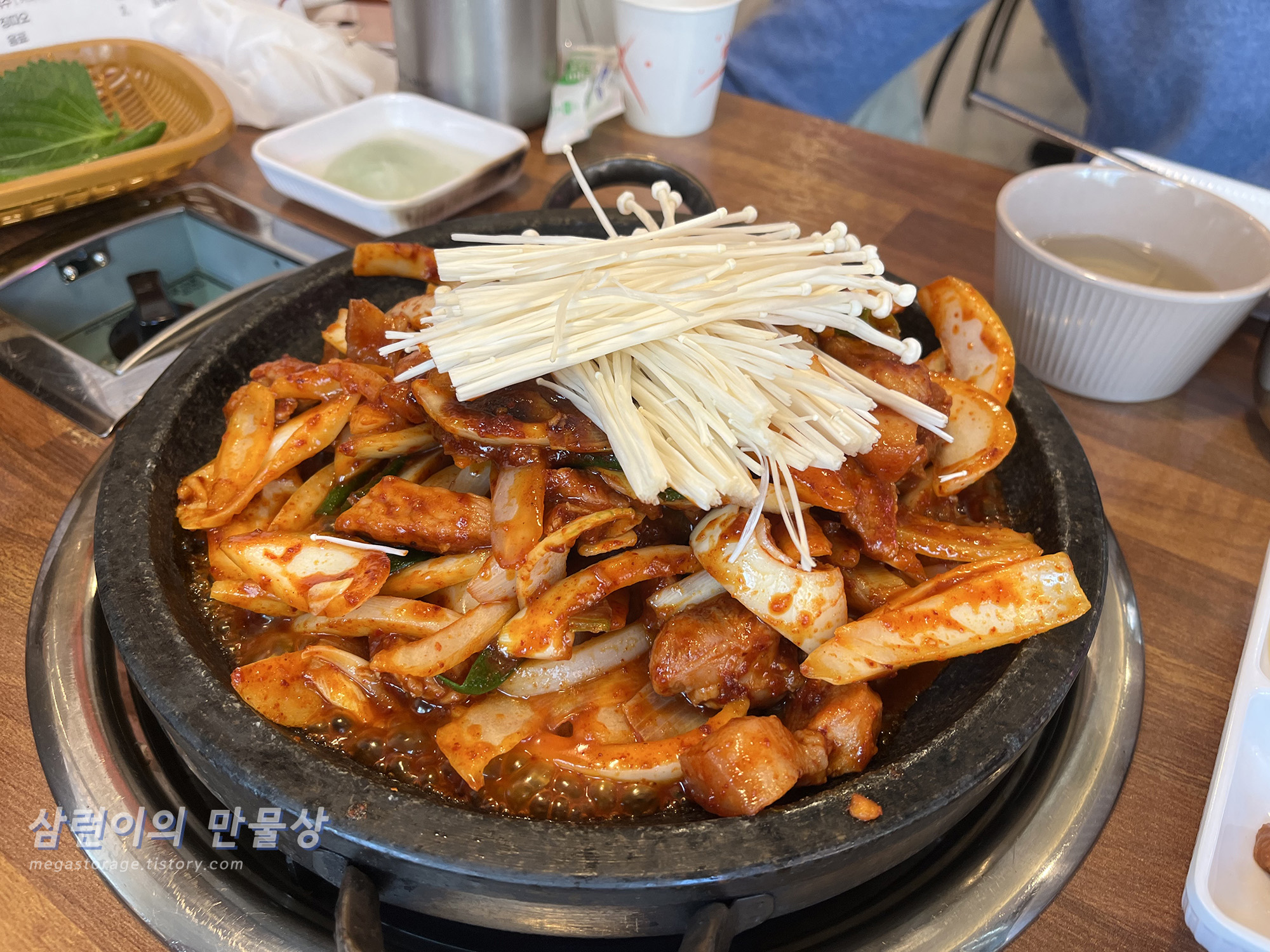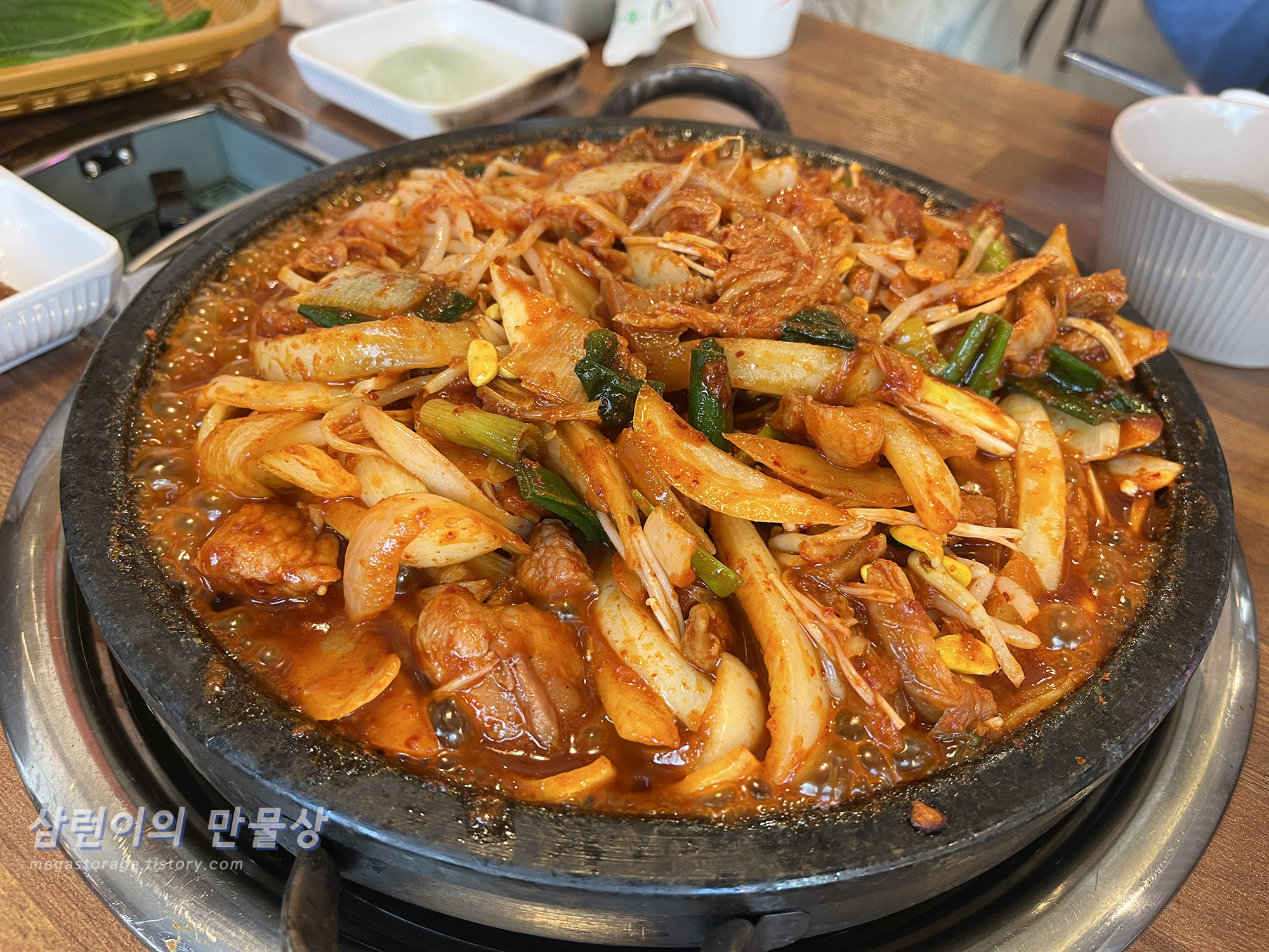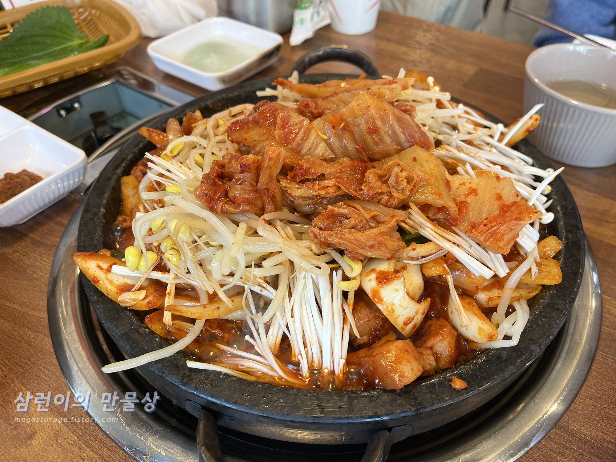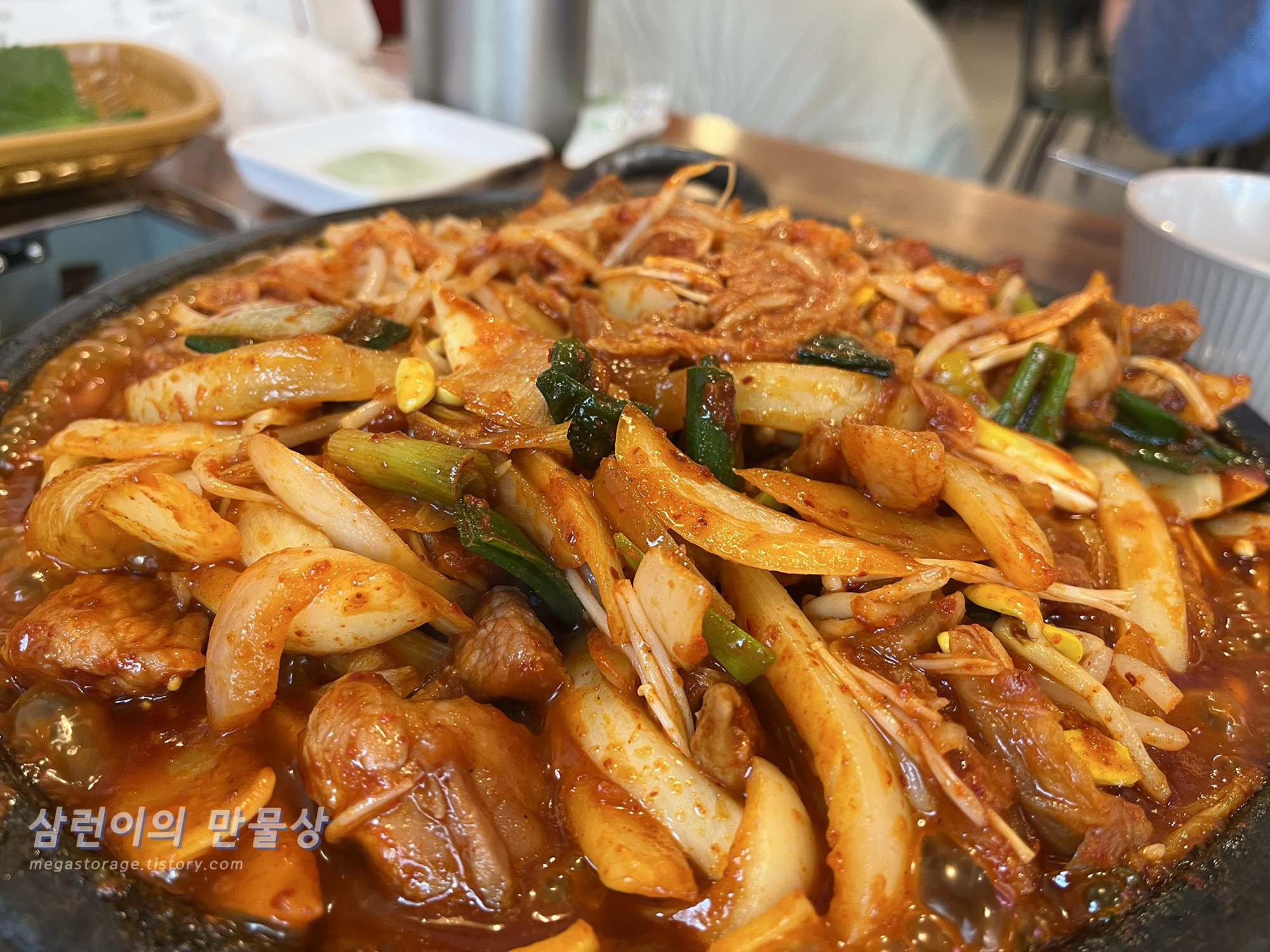 돌판 두루치기는 거의 조리가 된 상태로 나오다보니, 나오는데에 시간이 좀 걸립니다. 10분정도 걸리는 것 같았습니다. 위 모습은 테이블에 올라온 직후입니다.