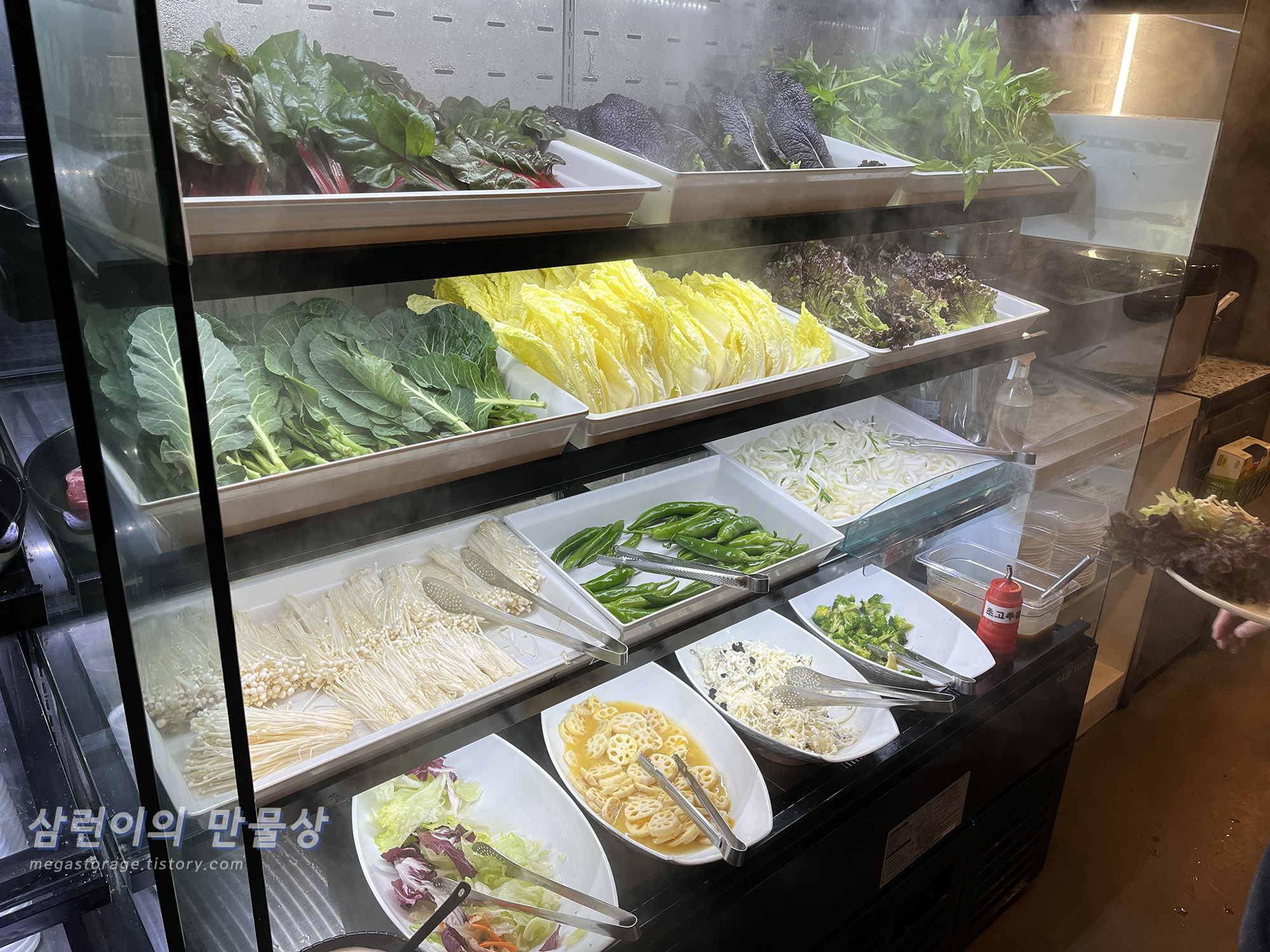 정말 다양한 야채가 있습니다. 상추는 있는데 깻잎이 없는 것이 너무 아쉽습니다.