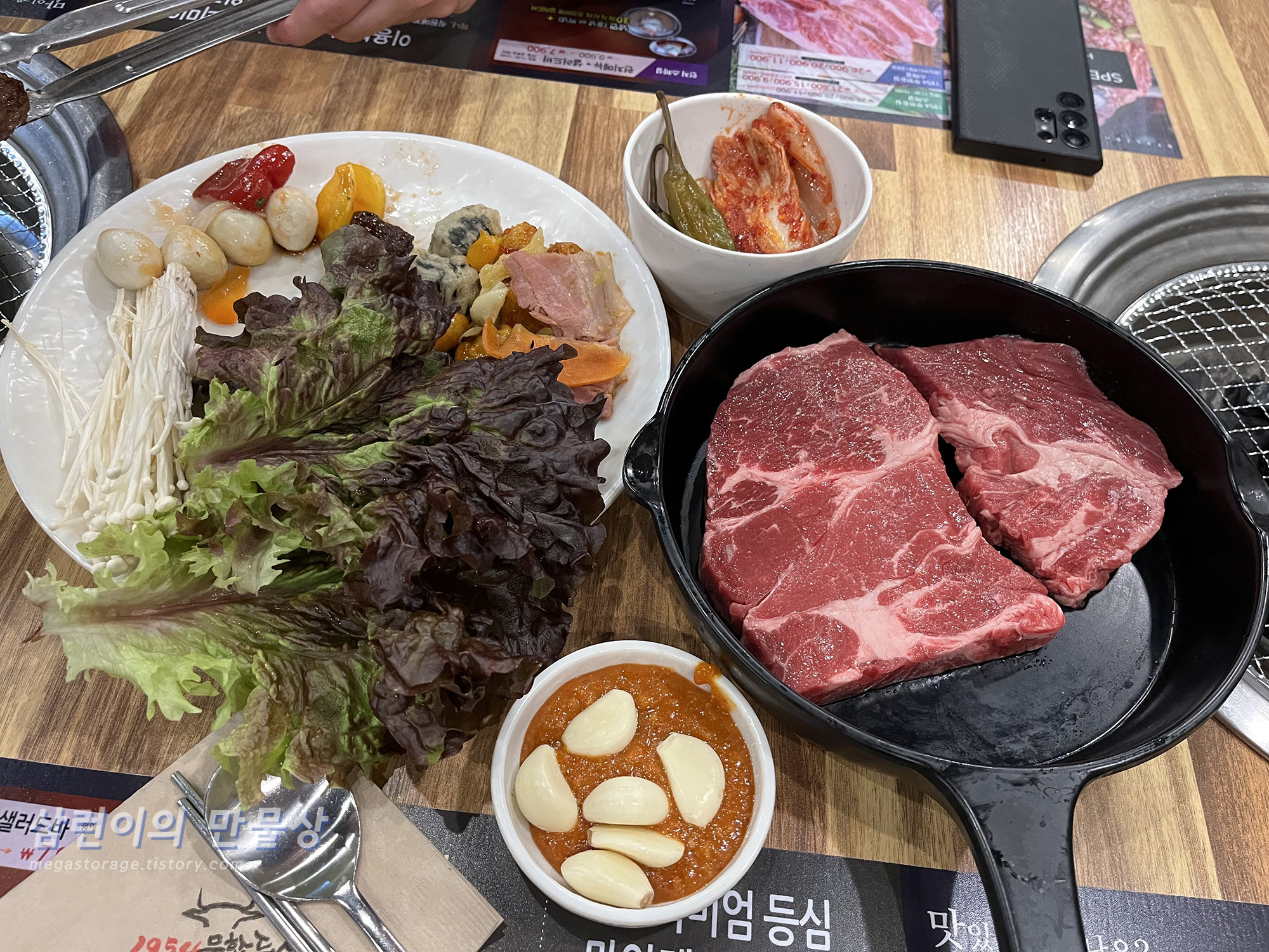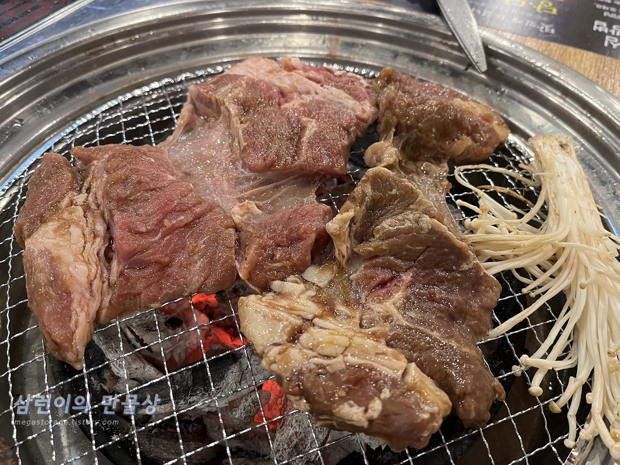 조금 탔습니다. 맛있더라구요. 무한리필 집에서 이런 퀄리티의 고기라니..