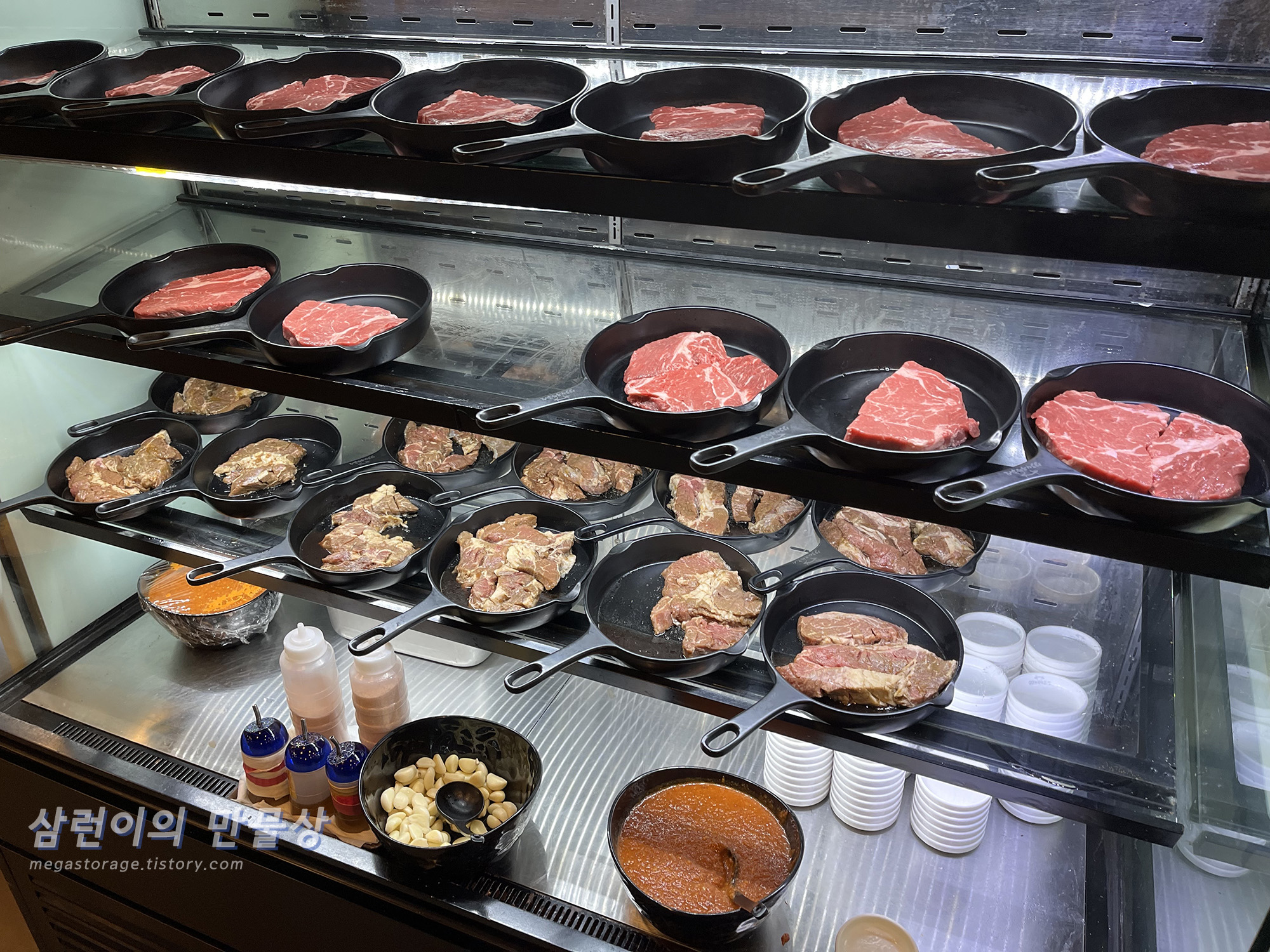 이곳은 고기, 술, 야채와 샐러드바의 음식들 모두 셀프입니다. (고기 불판 바꾸는 것은 직원분이 해줌) 그래서 고기가 많은 곳으로 가서 맘에 드는 고기를 선택할 수 있습니다.