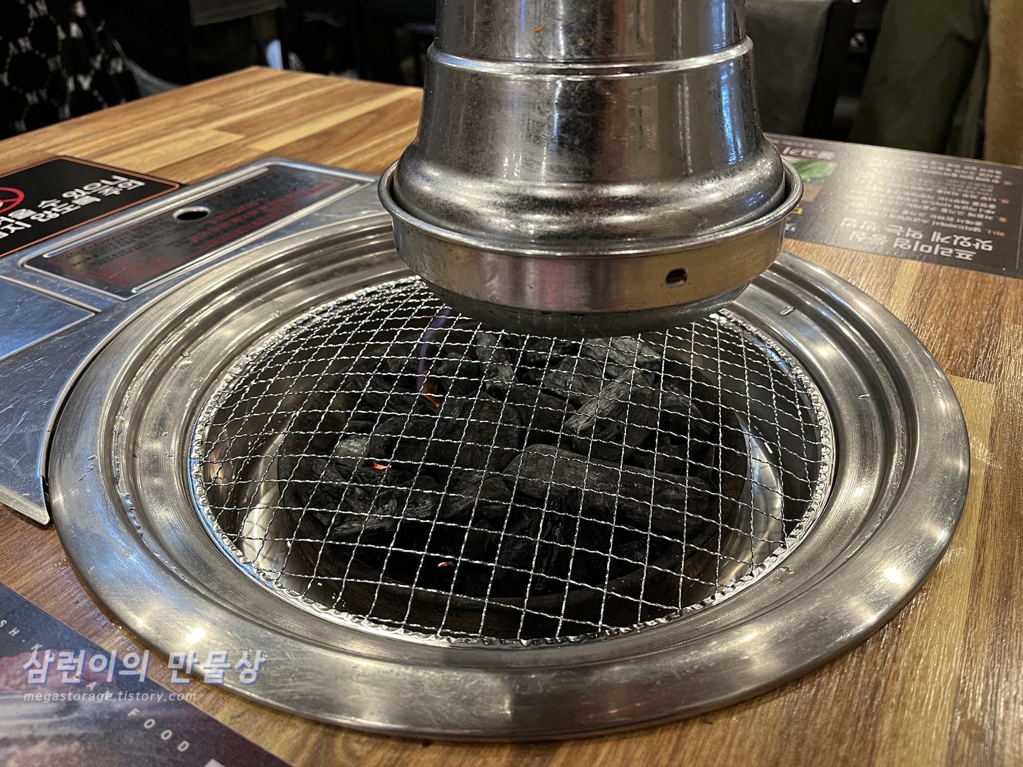 자리에 앉으면 숯불을 바로 넣어줍니다. 화력은 꽤 강한 편입니다.