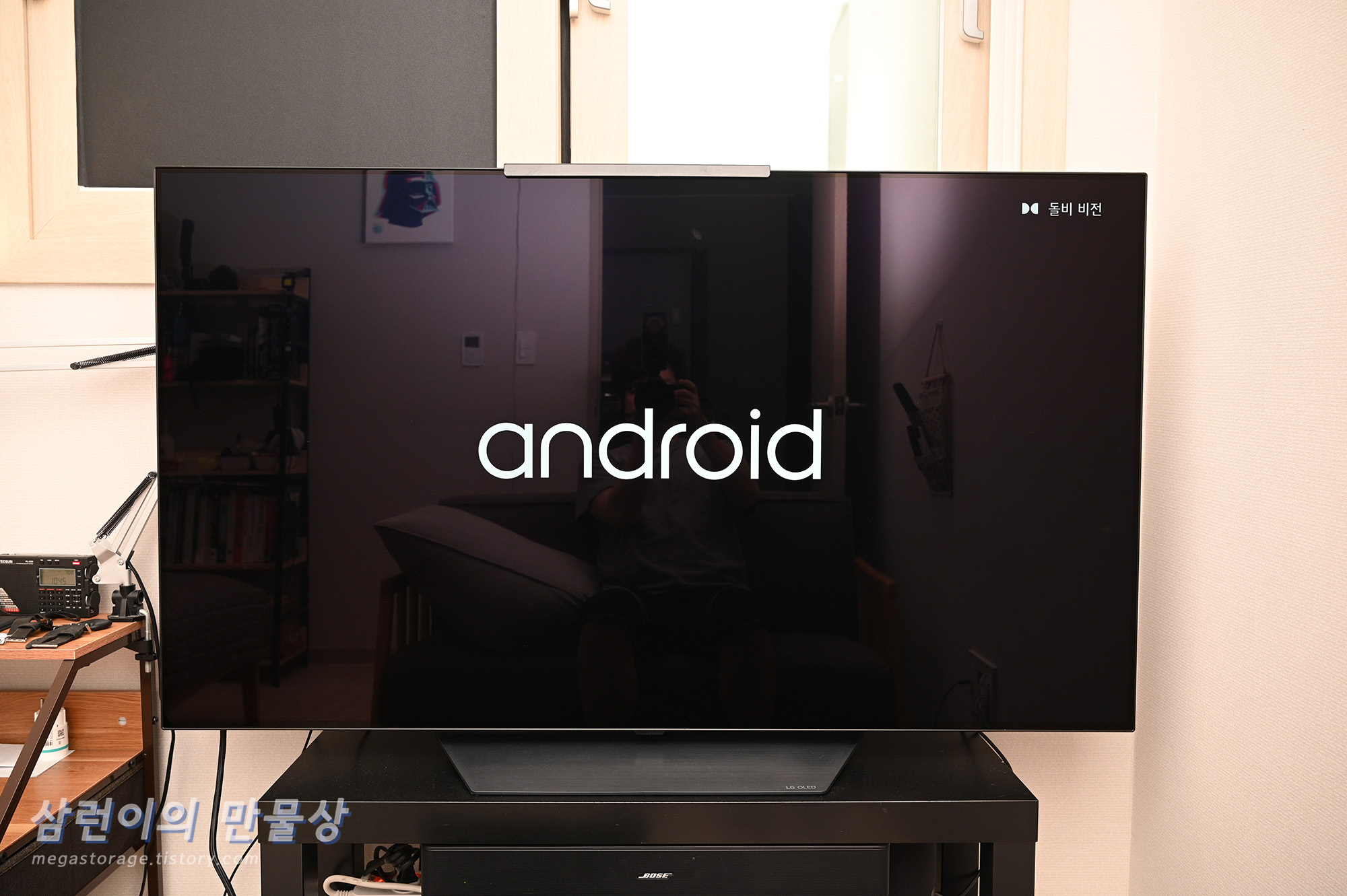 전원을 켜니까 android 로고가 저를 반겨줍니다. 우측 상단에 '돌비 비전'이 뜨는 것을 보니, 돌비 비전을 지원합니다.