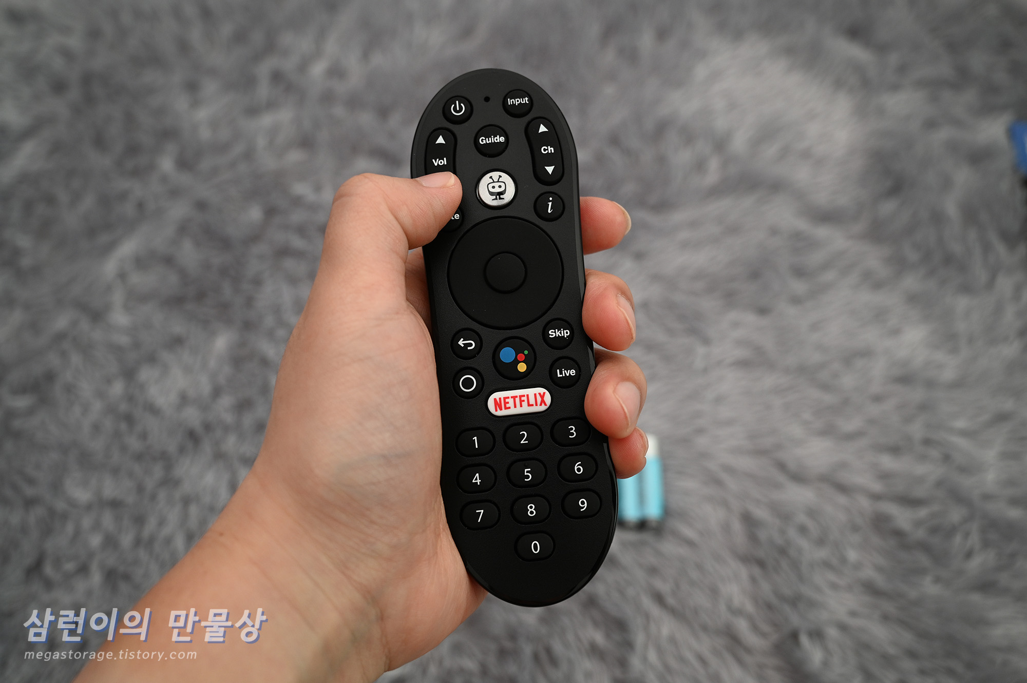 동봉된 리모컨입니다. AAA 타입 건전지 2개가 기본 제공됩니다.
