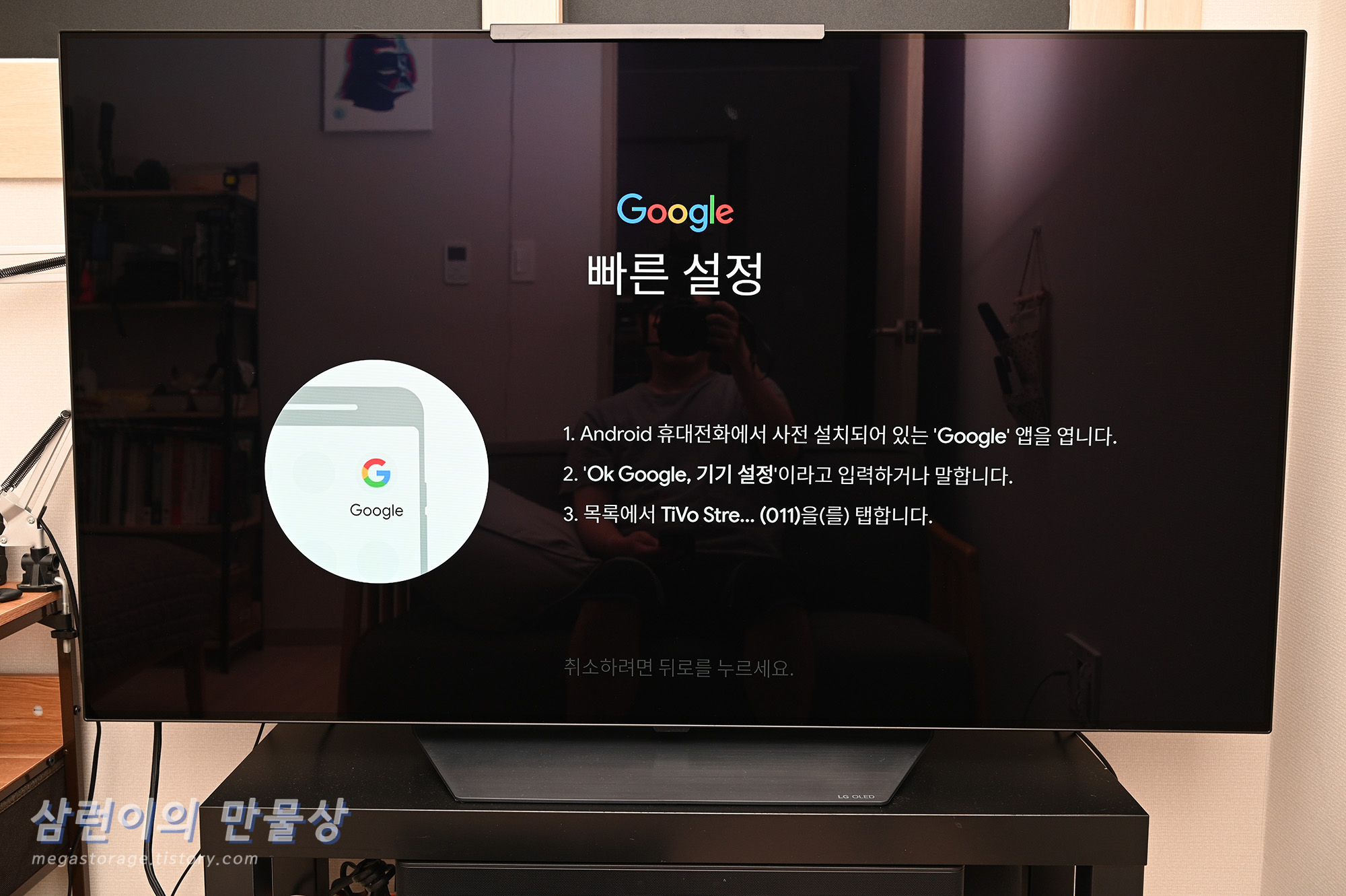Google 앱 설치 후 빠르게 설정할 수 있습니다. 그러지 않으면.. 리모컨으로 구글 계정과 비밀번호를 입력하는 힘든 작업을 해야 합니다.