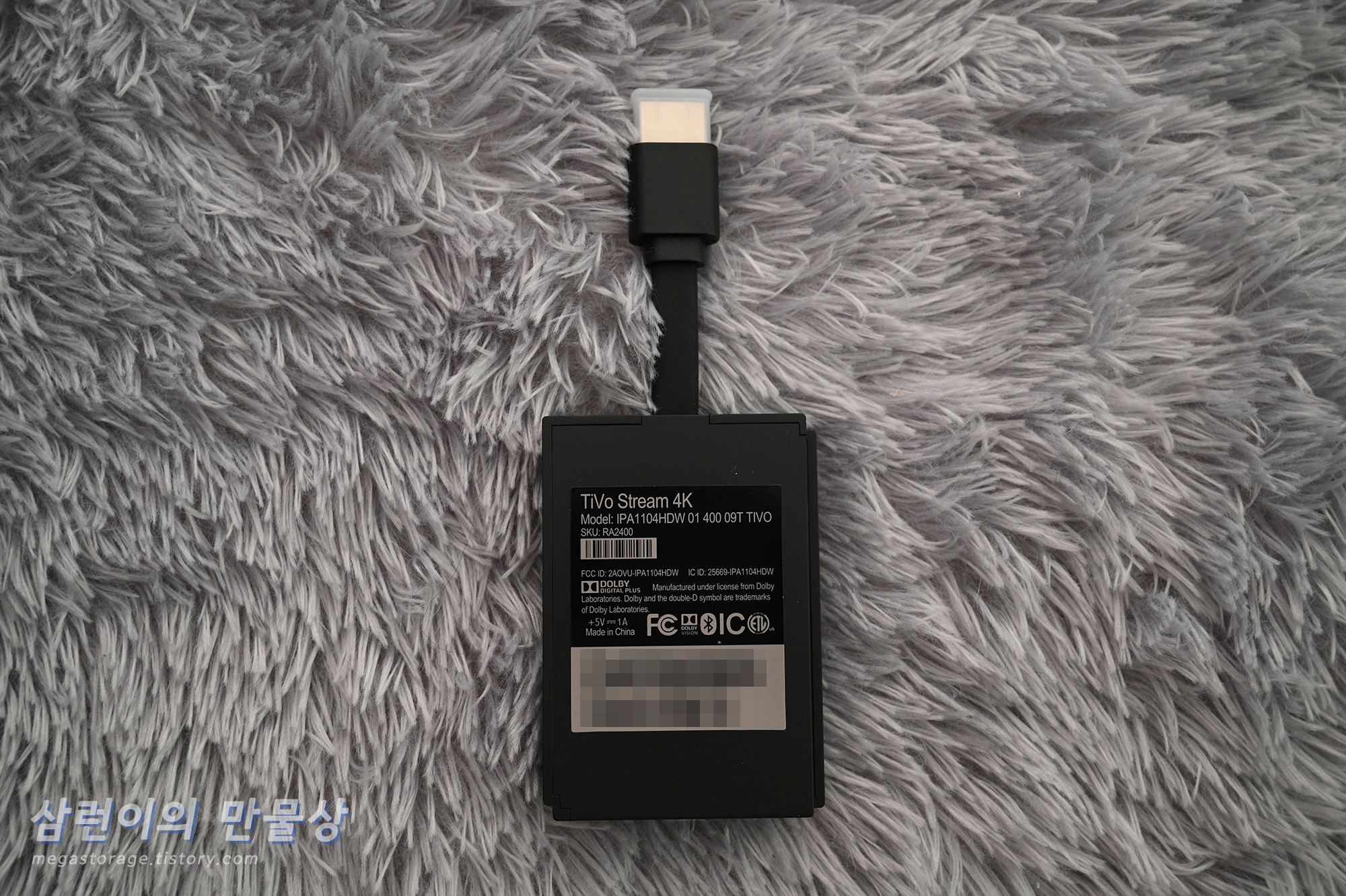 후면에는 Tivo Stream 4K의 인증 정보와 시리얼 넘버가 있습니다.