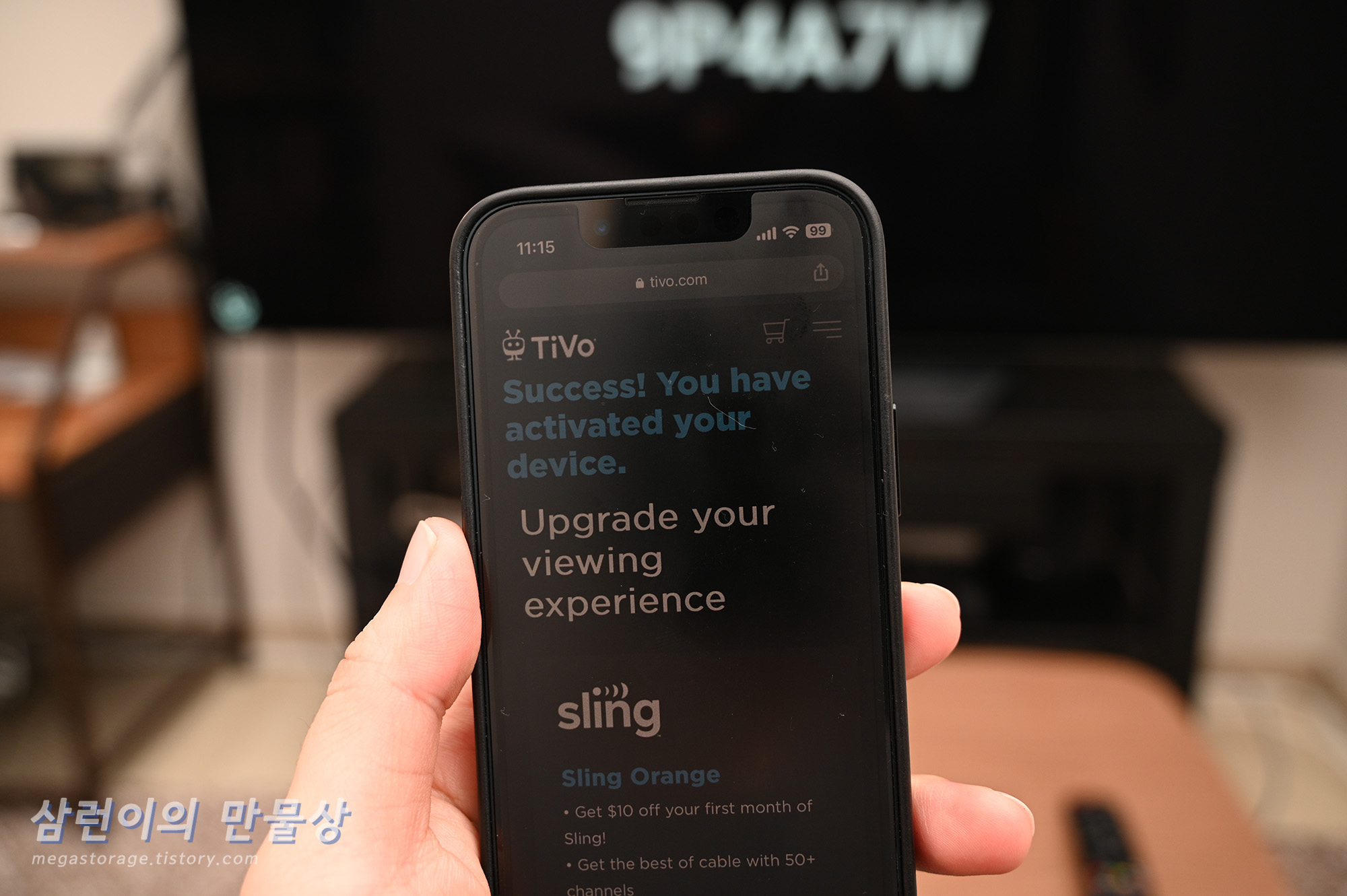 화면에 뜬 인증번호를 Tivo에서 활성화 시키면 사용 가능해집니다. 설정이 마무리 되었습니다.