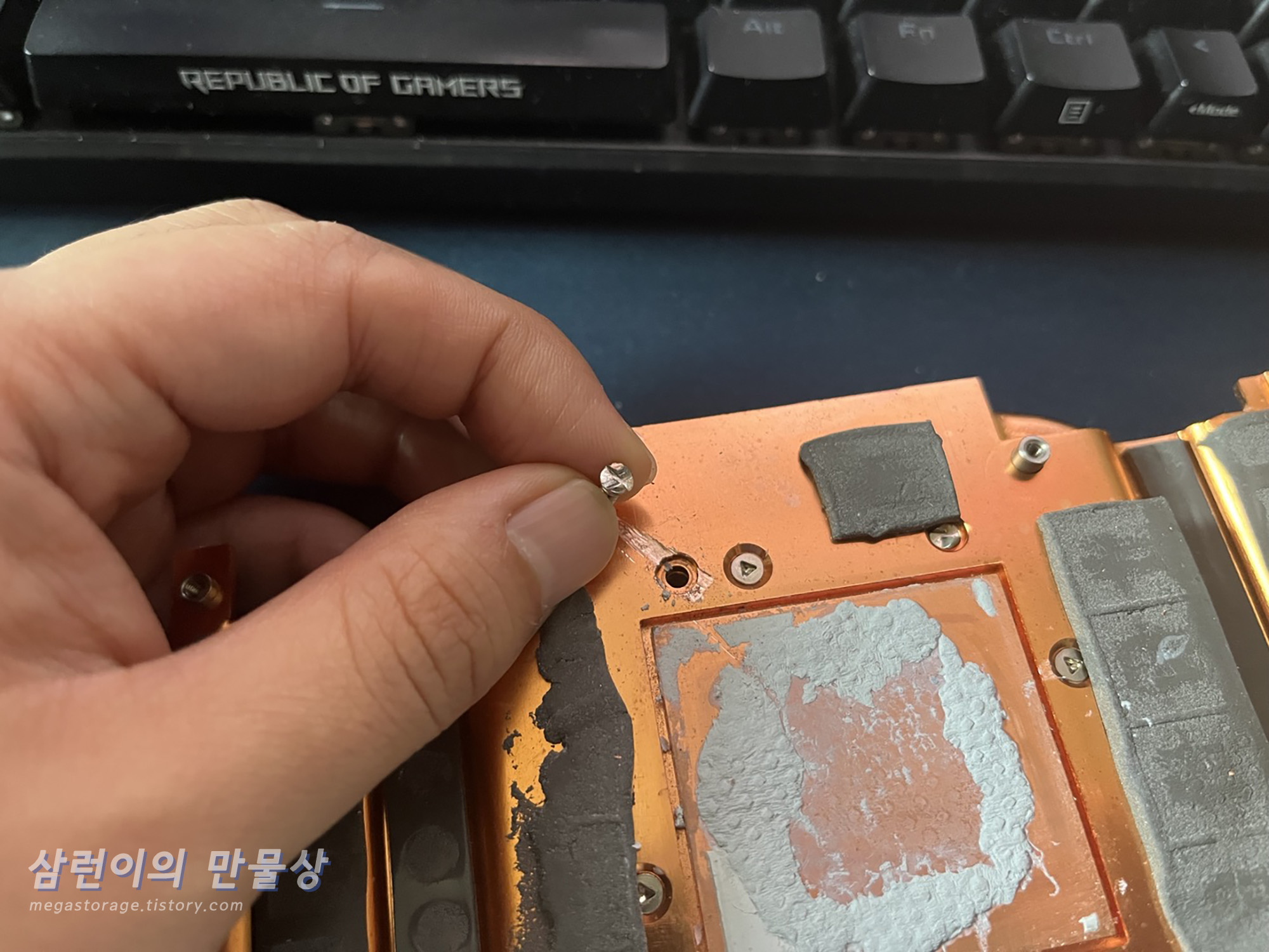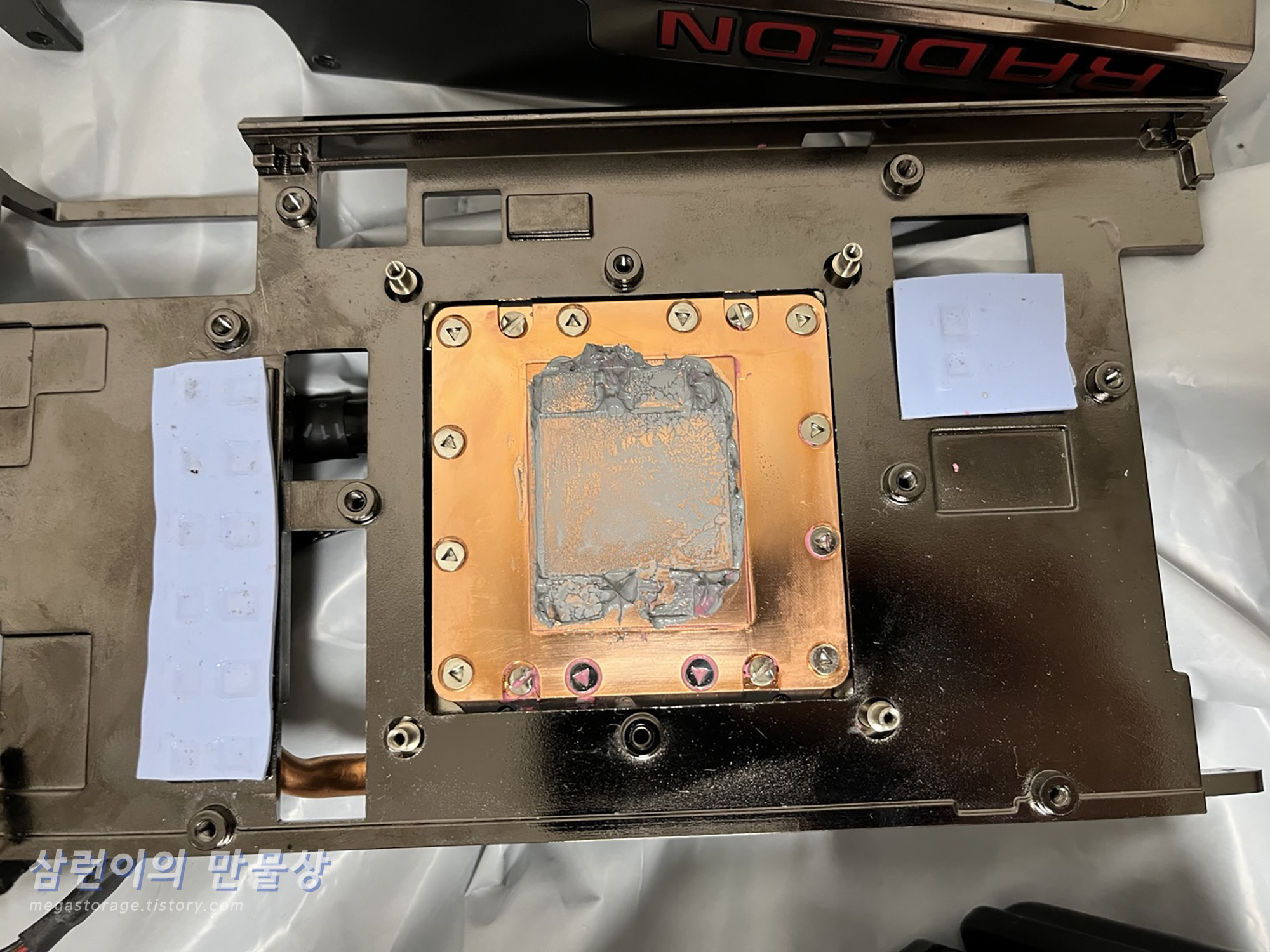 교체 작업을 위해서 AMD R9 Fury X의 방열판을 제거합니다.