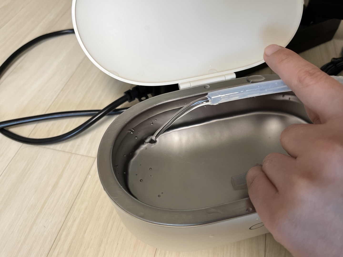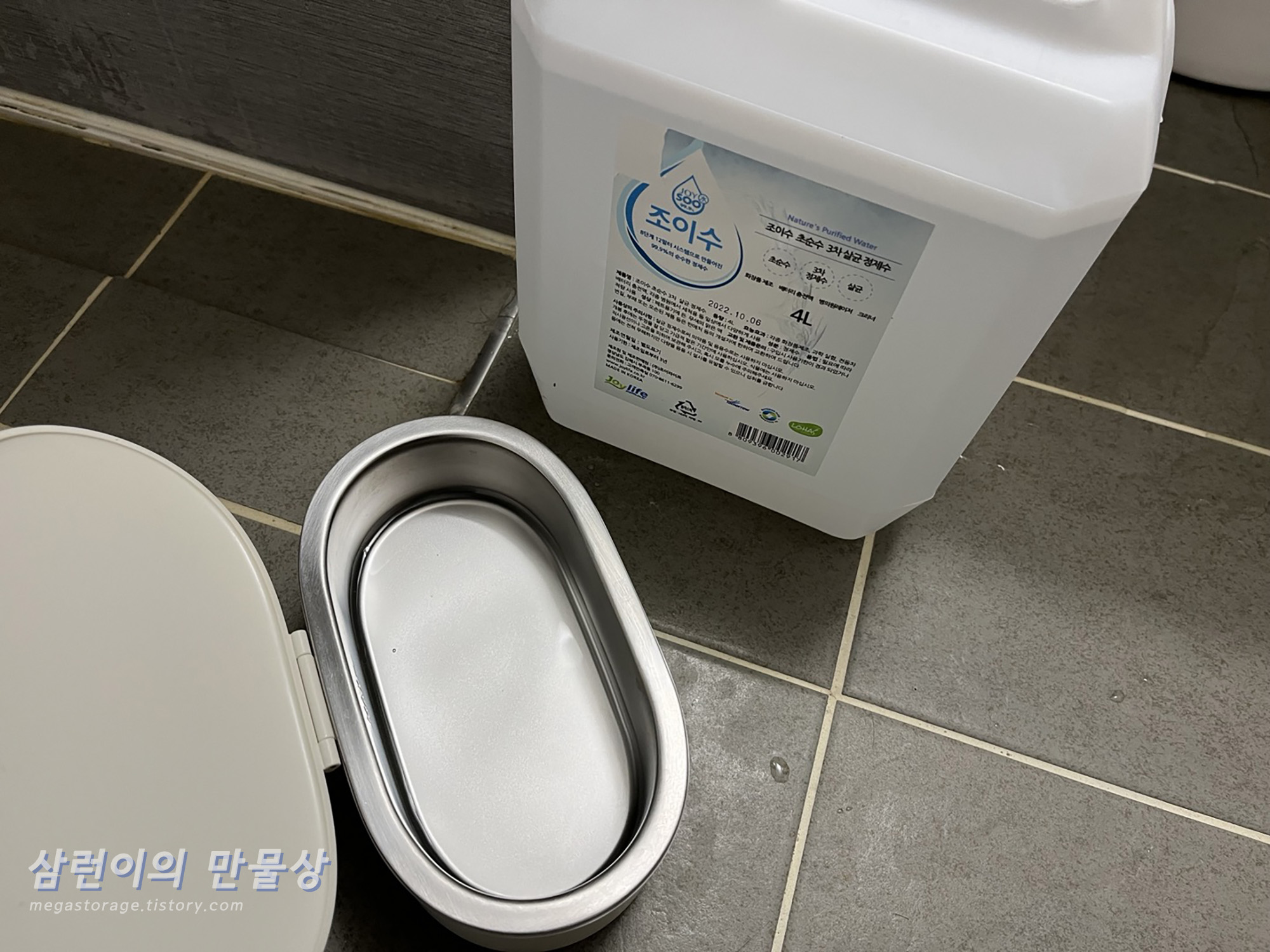 초음파 세척기에 정제수를 담은 후 지이잉... 돌려줬습니다.