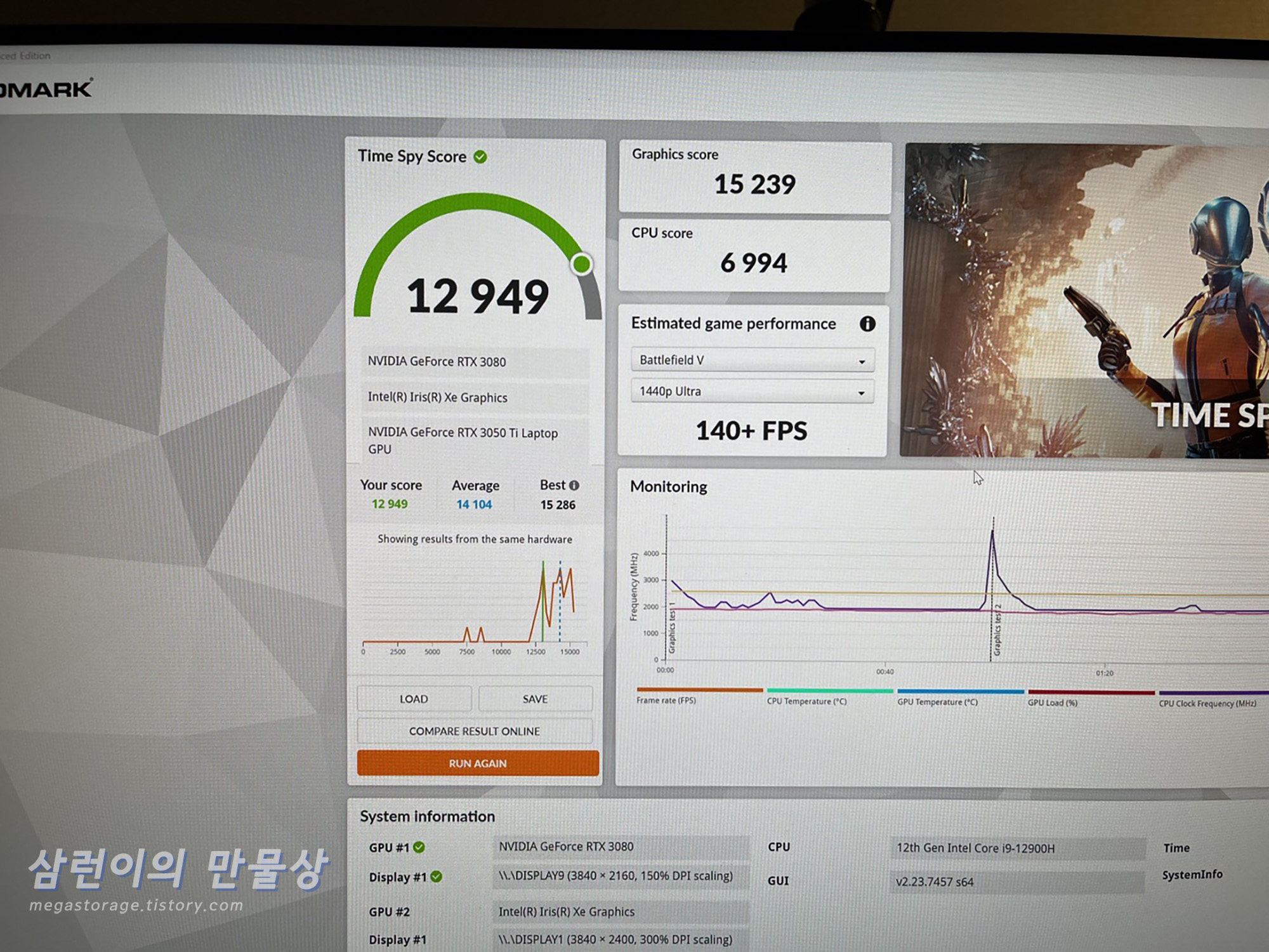 파스 그래픽 점수는 32,793점입니다. 데스크탑 구성 기준으로 평균 4만점이 넘는데, 셋팅이 뭔가 잘못 됐었나봐요.