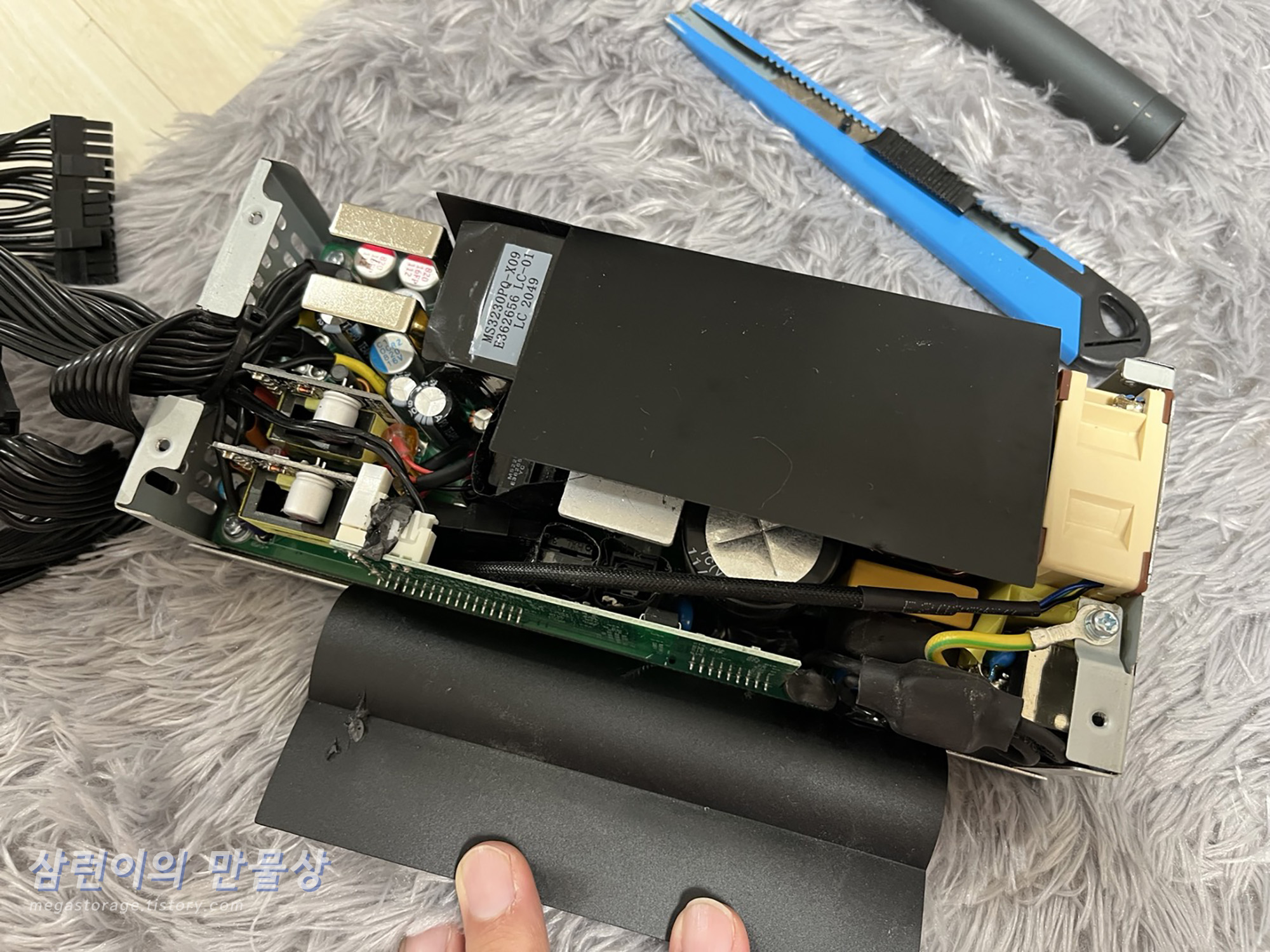 내장 파워 서플라이의 팬.... 먼지가 많네요. 좀 슬프긴 했지만.. 작동만 잘 하면 된다! 라는 생각을 했습니다.