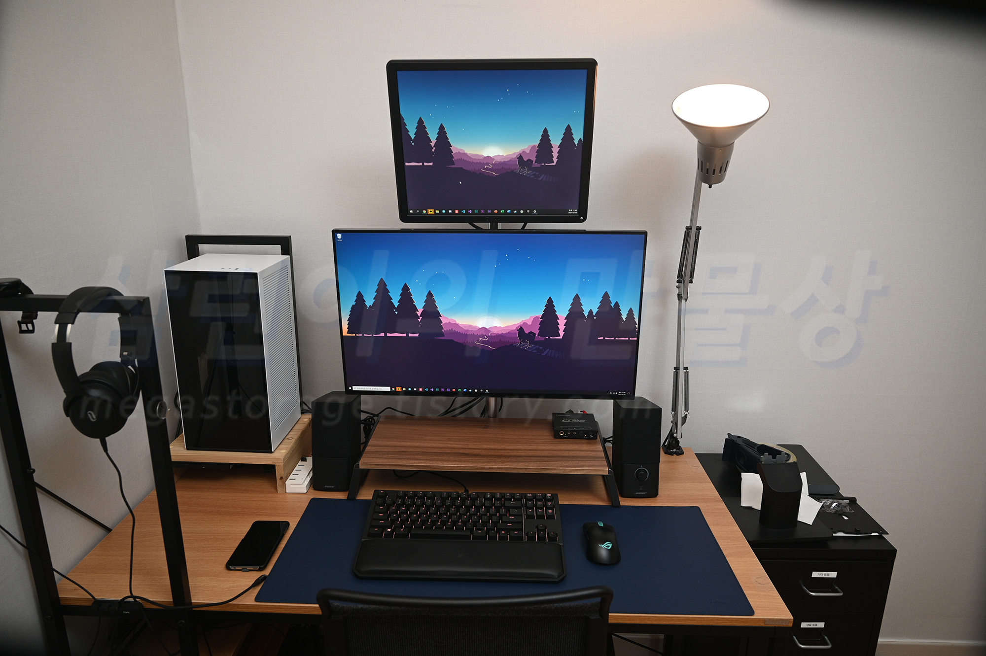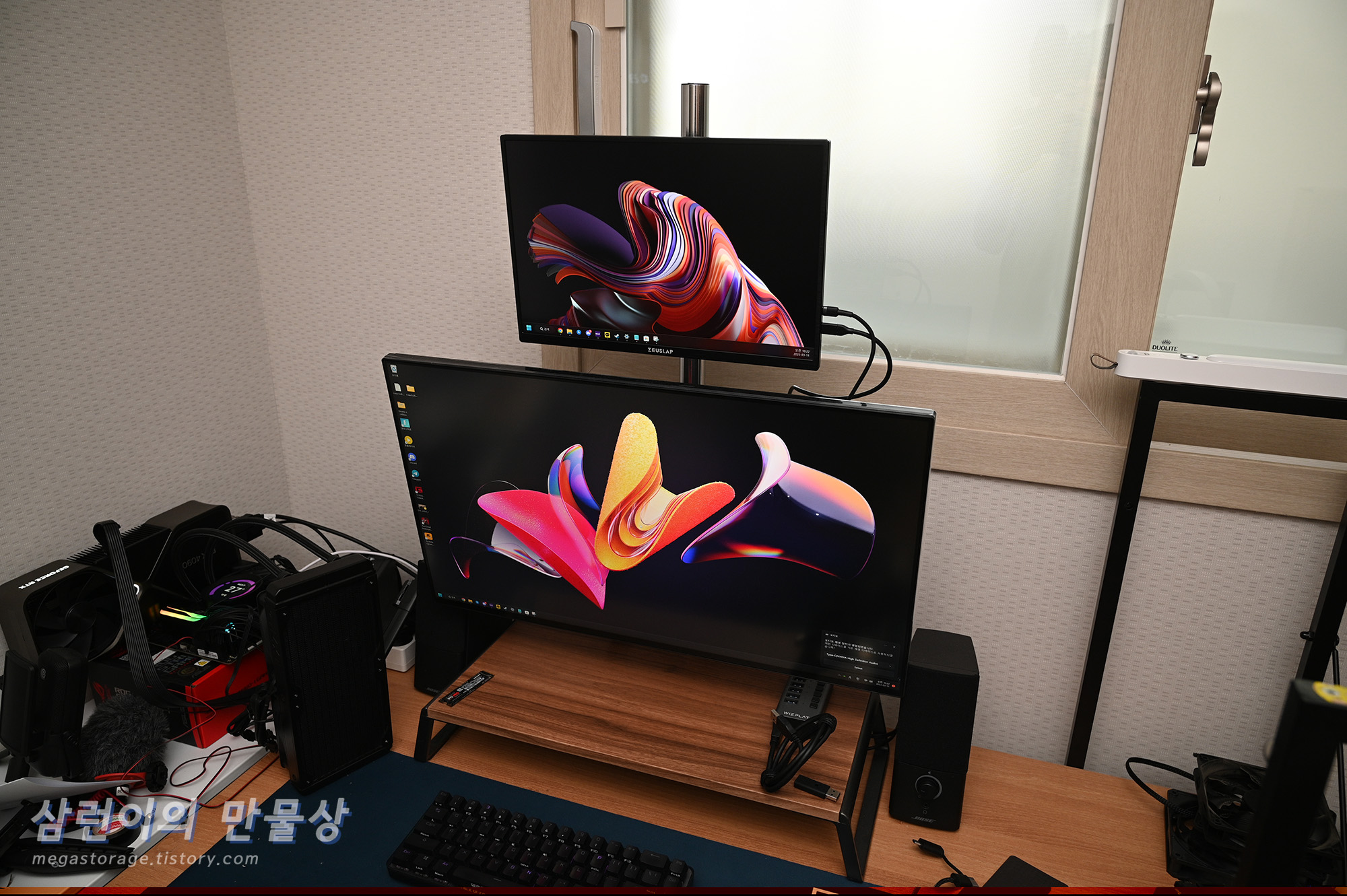 설치가 완료되었습니다. 아래에 있는 모니터는 LG의 27인치 4K 모니터인 27GN950 입니다.