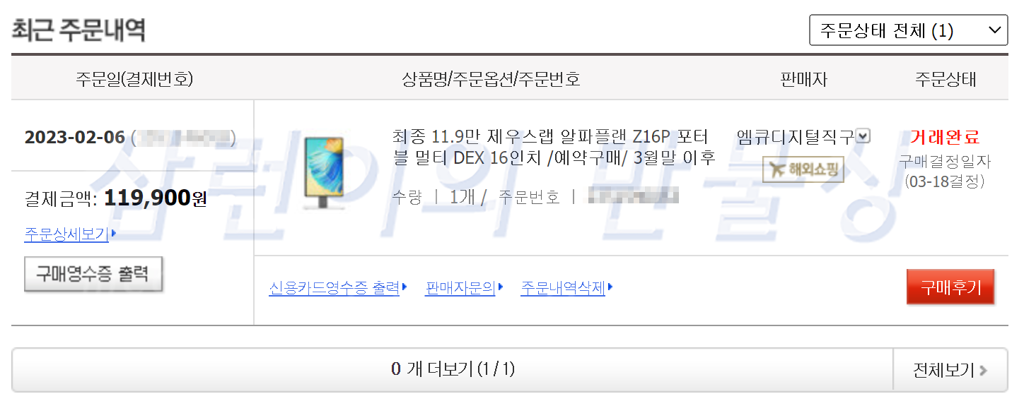 2023년 2월 6일에 옥션에서 주문했습니다. 결제 금액은 11만 9천 900원입니다. 원래 2월 말에 발송한다고 했었는데 밀리고 밀리더니 3월 중순에 왔습니다.