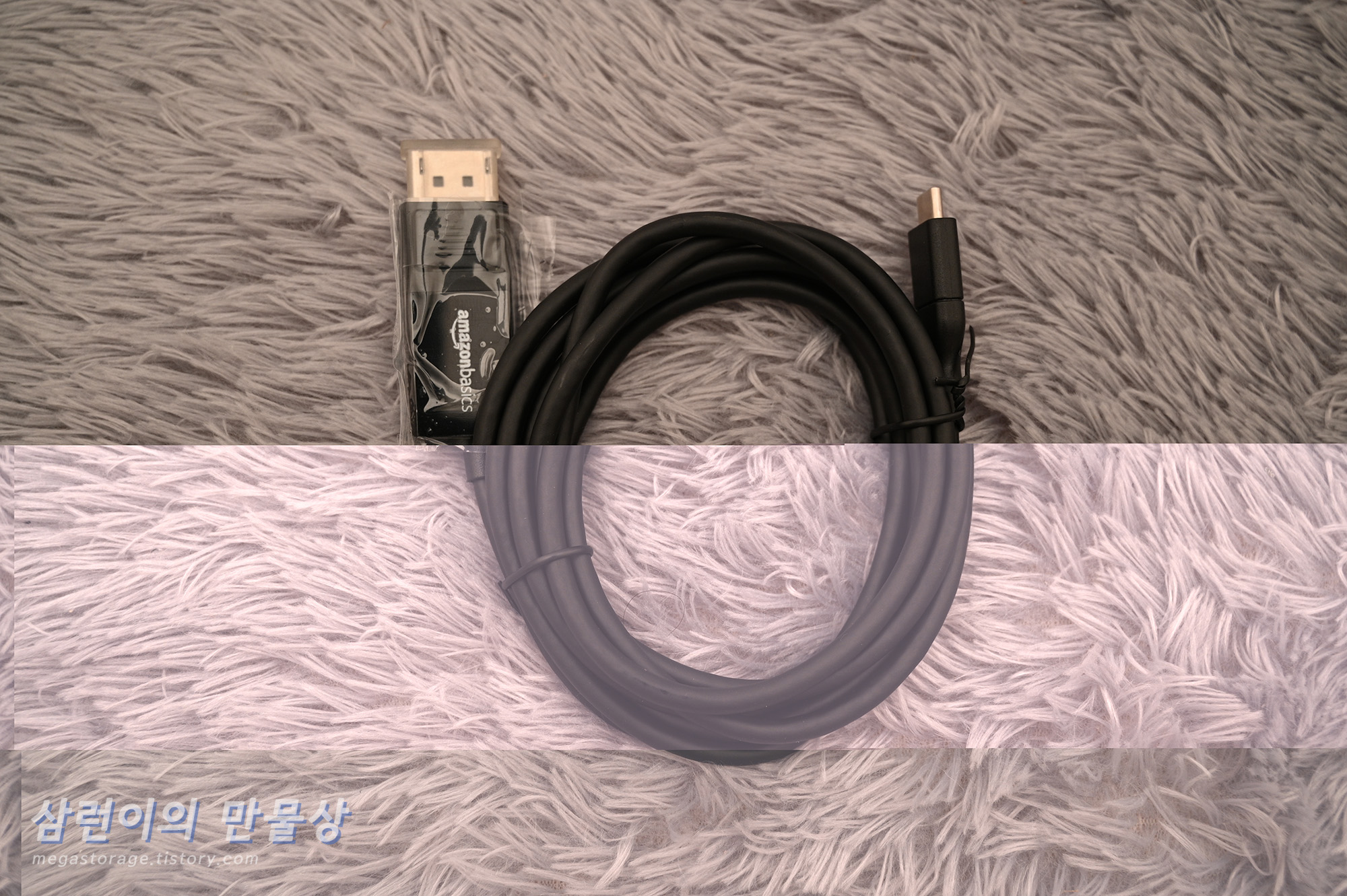 따단..! AmazonBasics DP USB-C 양방향 케이블입니다. 상당히 굵습니다.