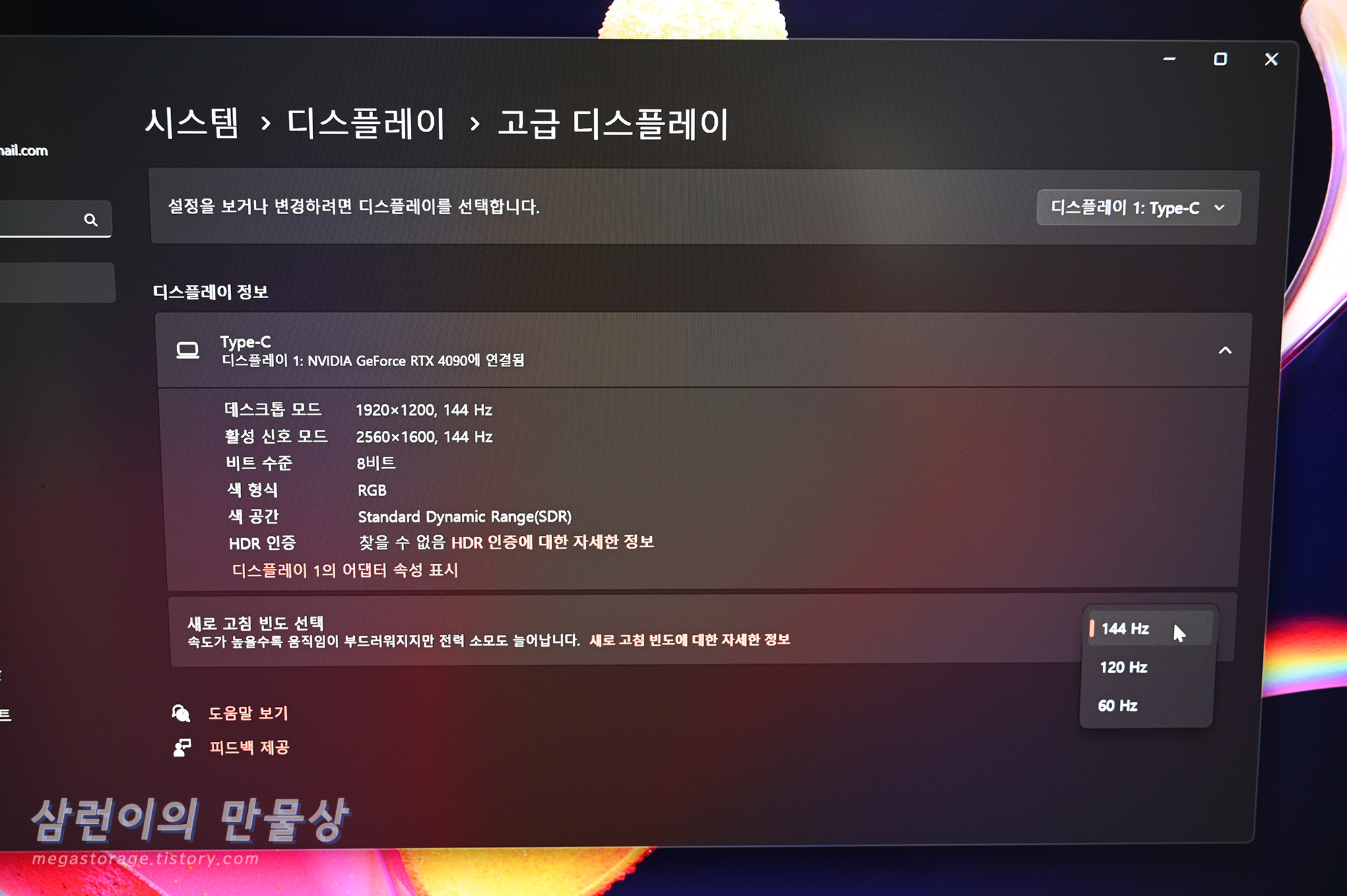 2560x1600 해상도 잘 나오며 144Hz 설정 잘 됩니다.